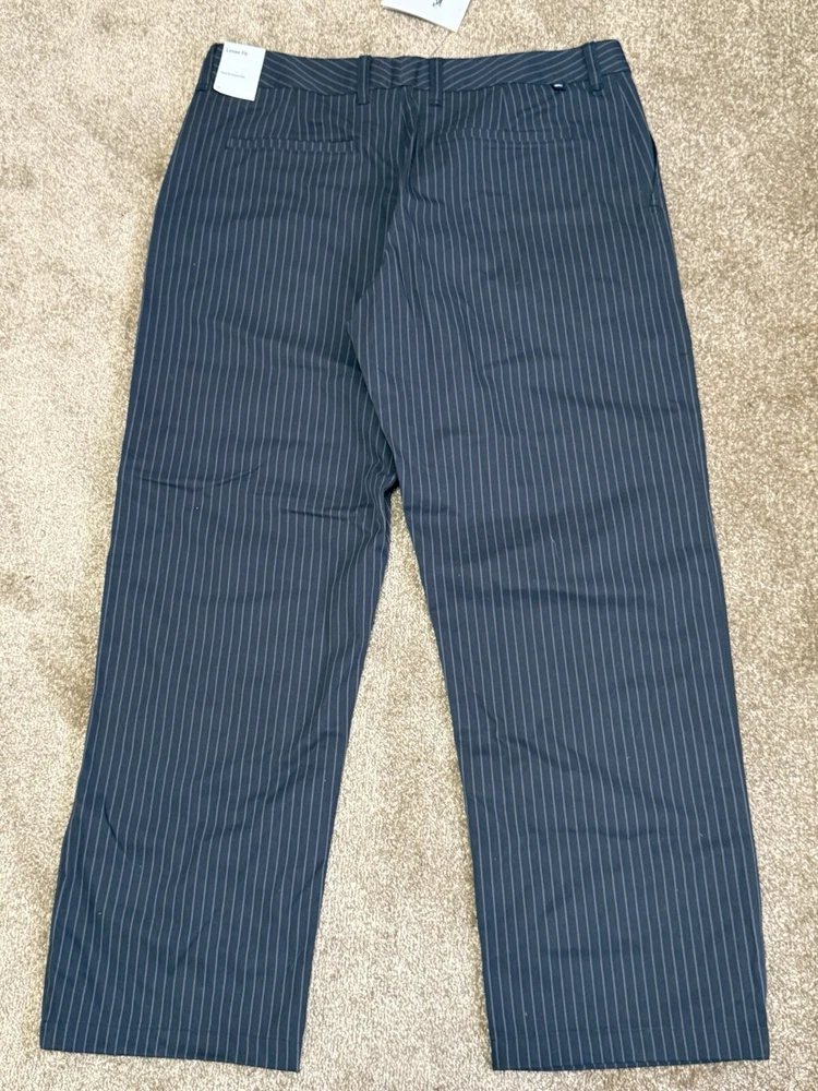 Elevate your skateboarding wardrobe with these Nike SB Skateboarding Chino Pants in black and gray pinstripes. These pants are perfect for the skater who wants to look classic and stylish at the same time. Made from polyester, these pants have a regular fit and a straight leg style with a 30-inch inseam. The pants feature a flat front and a 5-pocket design, including a slash pocket and a coin pocket, providing ample storage space for your essentials. The Nike SB Skateboarding Chino Pants are available in size 36 and are suitable for men who love the skateboarding culture. These pants are perfect for any casual occasion and can be paired with your favorite skateboarding shoes to complete the look.