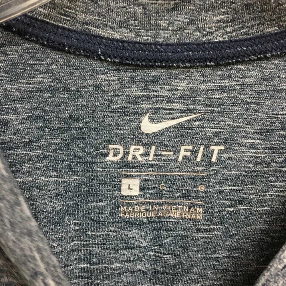 Sleeve Type: Casual Sleeve Product Line: Nike Dri-FIT Brand: Nike Accents: Logo Fit: Athletic Season: Fall, Spring, Summer, Winter Closure: Pullover Fabric Wash: Medium Color: Blue Model: Nike Dri-Fit Material: Cotton Features: Breathable, Lightweight Pattern: Solid Type: T-Shirt Performance/Activity: Cross Training, Gym & Training, Running & Jogging Department: Men Size: L Neckline: Crew Neck Size Type: Regular Seller Notes: “Good Used Condition. Please, See Pictures for Full Condition and Measurements.” Garment Care: Machine Washable Theme: Classic, Logo, Sports Fabric Type: Blended Fabric Country/Region of Manufacture: Vietnam Sleeve Length: Short Sleeve Occasion: Activewear, Casual, Travel Style: Basic