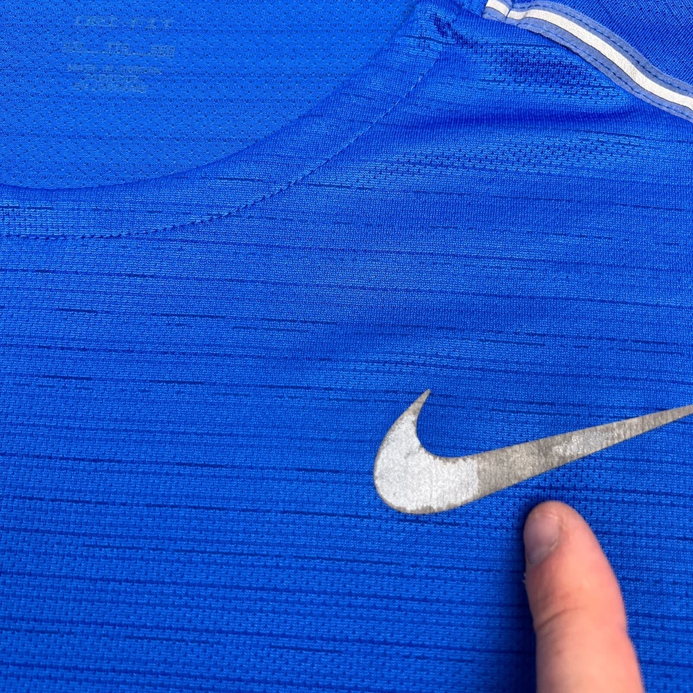 Nike Shirt Mens 2XL Blue Athletic Dri Fit Swoosh Performance No rips or stains, Reflective material worn off front swoosh, small bump in material near end of leg. Care tag is cut out. SHIPPING: I ship same day M-F, and almost every Saturday. RETURNS: I accept FREE returns in the same condition as they were sent out for 60 days. TRUST: I've have been selling for 3 years and have a terrific feedback record because I make my customers happy. Compare the measurements to your favorite garment to make sure you’re getting your desired fit! All clothes have been laundered as per platform standards.