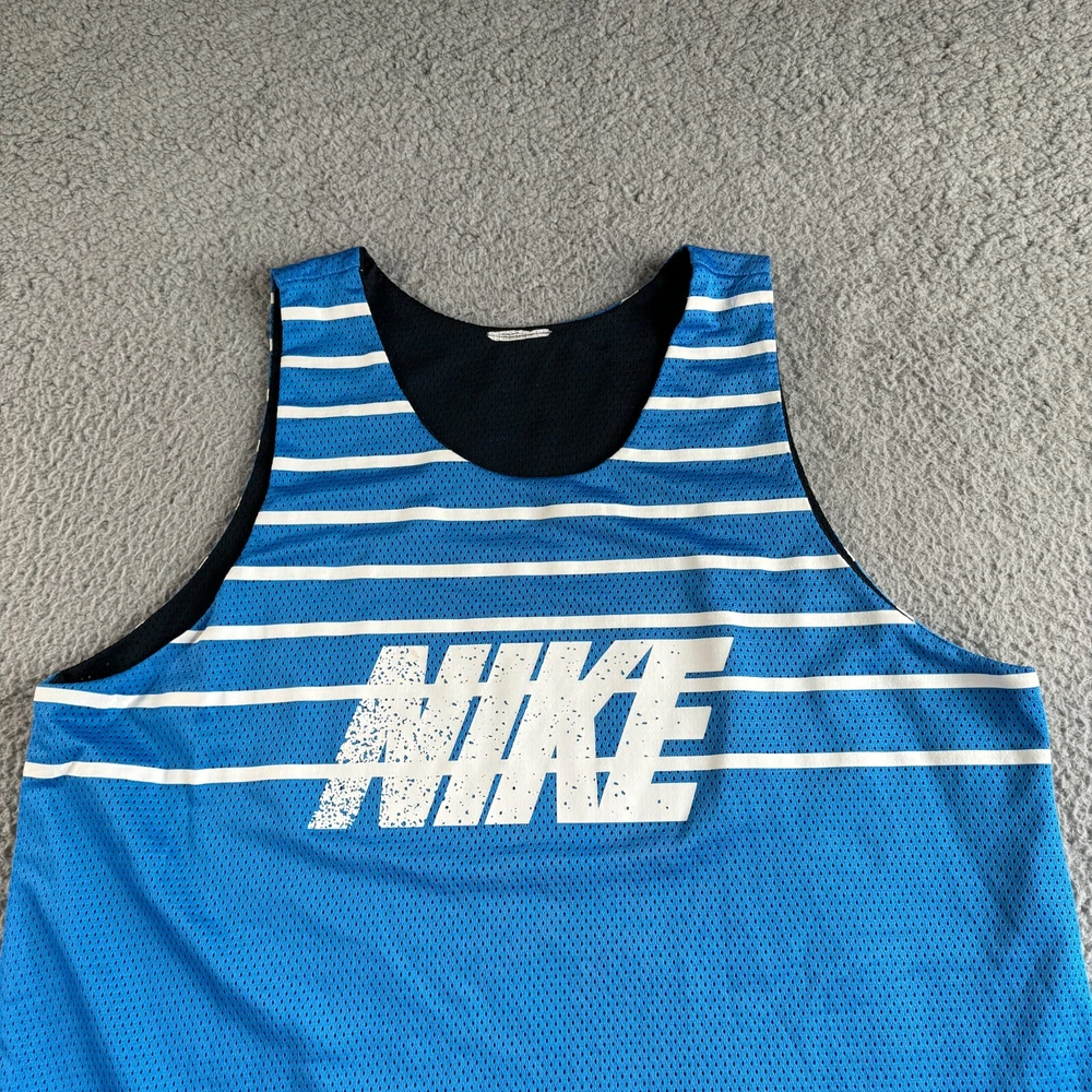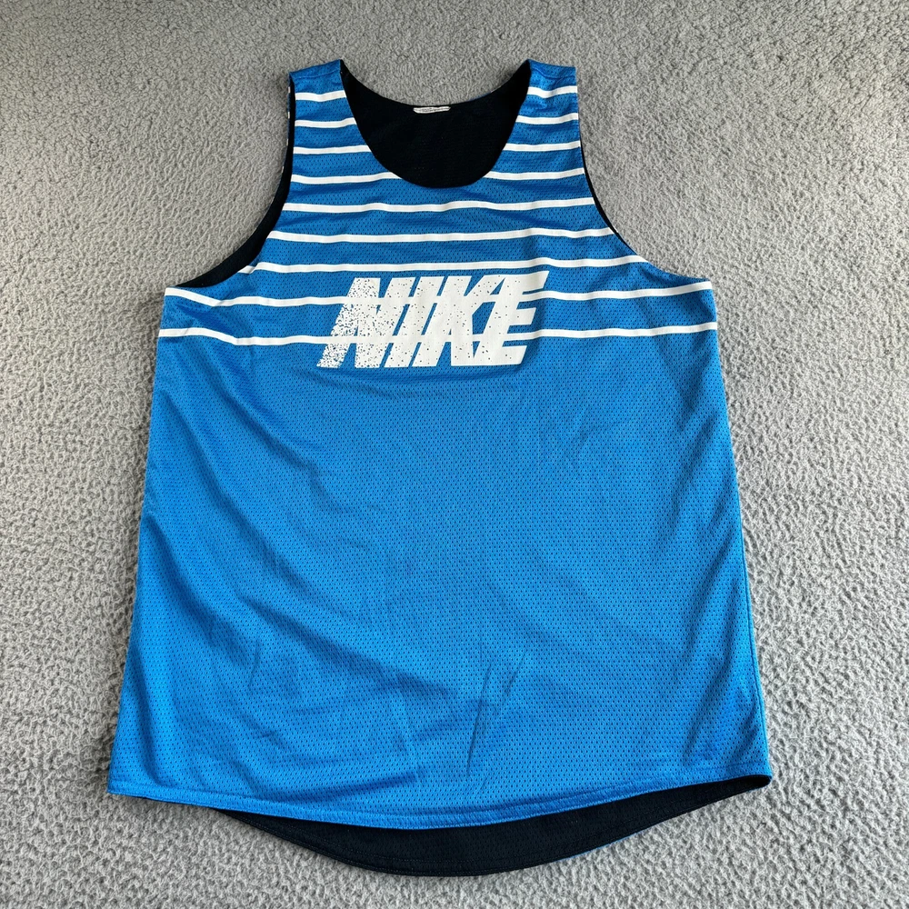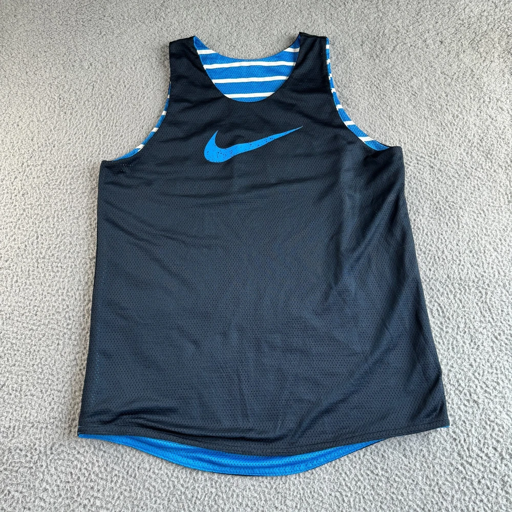 Nike Shirt Mens 42" Blue Striped Tank Top Vest Reversible Center Swoosh Sports Condition: Pre-owned. Good condition. No size tag. Please see all photos for condition and measurements. Please let us know if you have any questions. Thanks for shopping with us.
