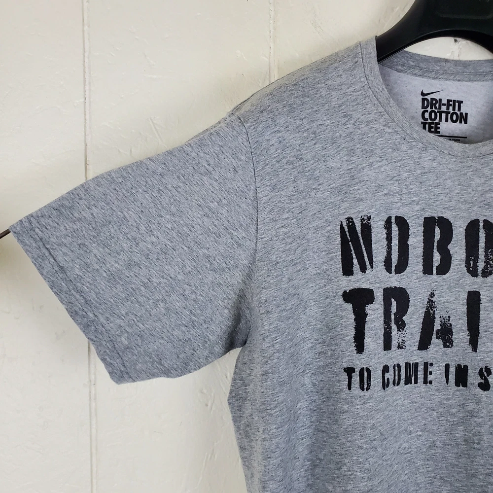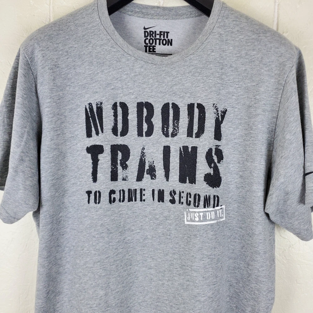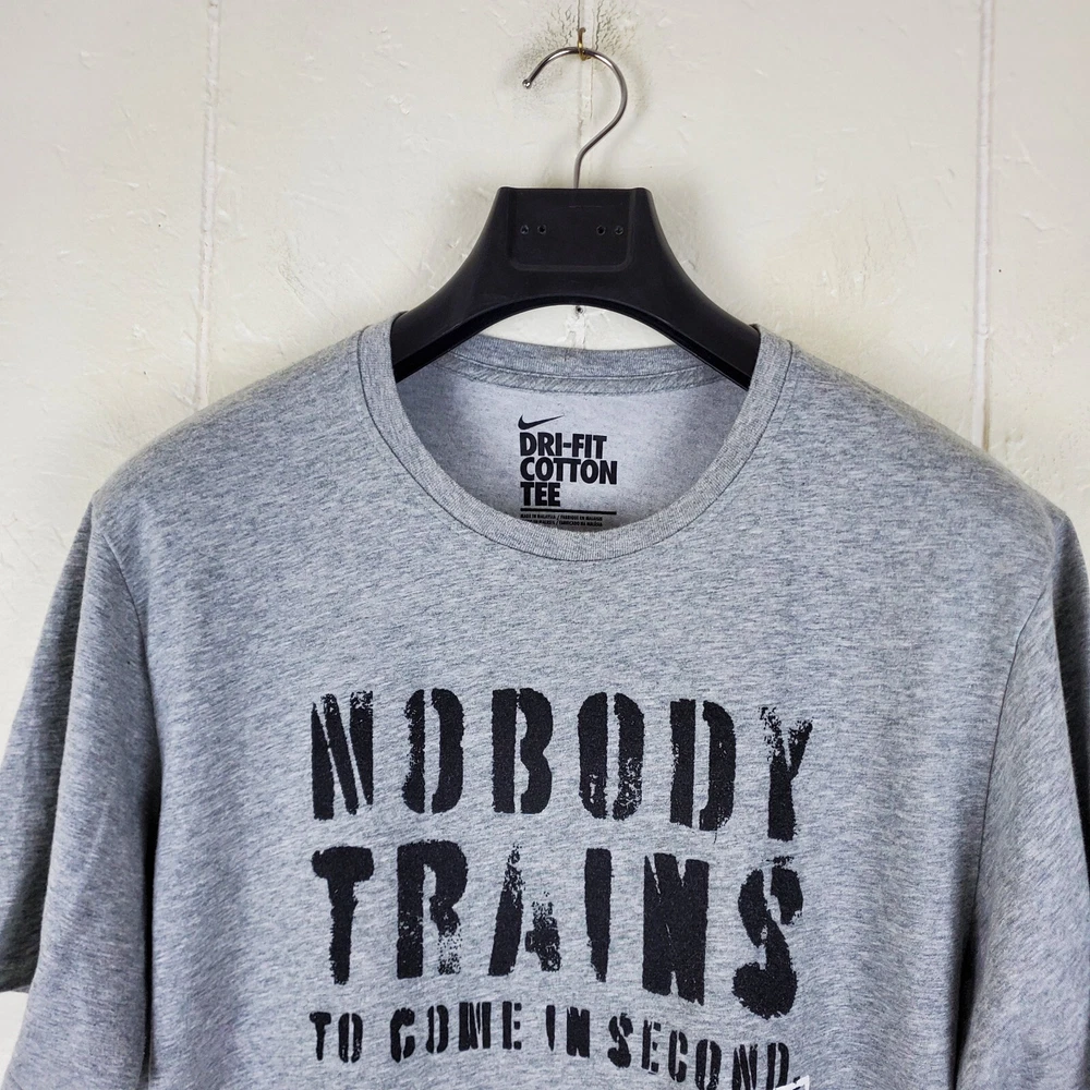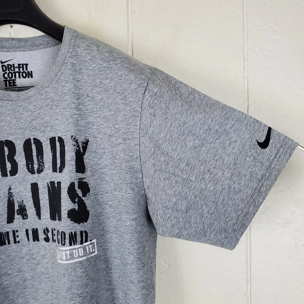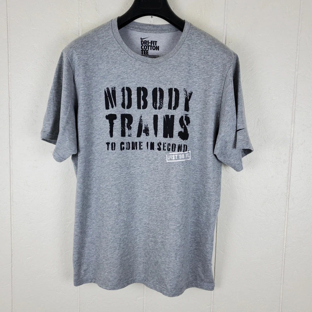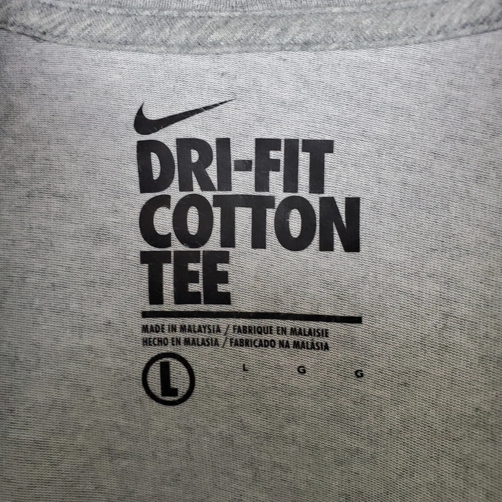 Nike Shirt Mens Large Gray Graphic Crew Neck Short Sleeve Stretch Dri Fit Features T-Shirt Crew Neck Short Sleeve Casual Pullover Stretch Graphic Tag Size L Exact Measurements Length: 28.00" Chest (Pit to Pit): 22.50" Condition Good Pre-owned Condition. Returns Free Returns Within 30 Days SKU 8180