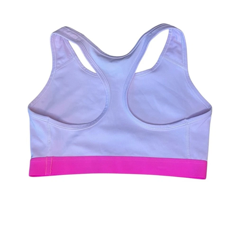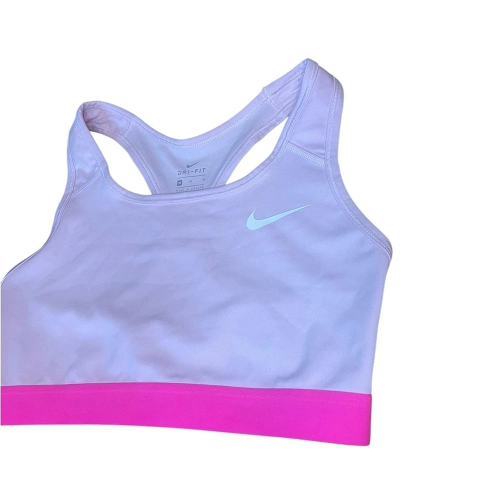 Nike Sports Bra Dri Fit Swoosh Medium Support Pink White Logo Womens Medium Excellent condition no flaws to note Color is Pink and Hyper Pink with white Nike Swoosh Logo