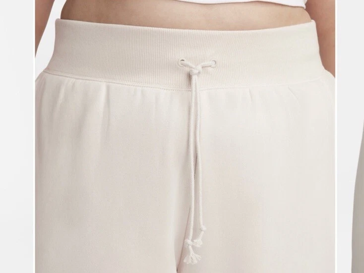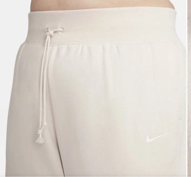 New Elevate your activewear game with these Nike Sportswear Phoenix Fleece Women's High-Waisted Cropped Sweatpants in size 3XL. The drawstring closure and wide-leg style ensure a comfortable and secure fit during any performance or activity, whether it be gym and training, walking, or running and jogging. The pants are made of a polyester and cotton blend with a fleece fabric type, making them perfect for any season, whether it be winter, summer, fall, or spring. These pants feature an oversized design, compression area in the waist, and pockets for added convenience. The white color and Nike logo make them a stylish addition to any athleisure outfit. Machine washable for easy care, these pants are a must-have for any active woman's wardrobe.