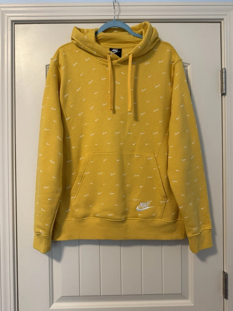 Nike Sportswear Swoosh Printed Yellow Pullover Hoodie Size M. Excellent condition.