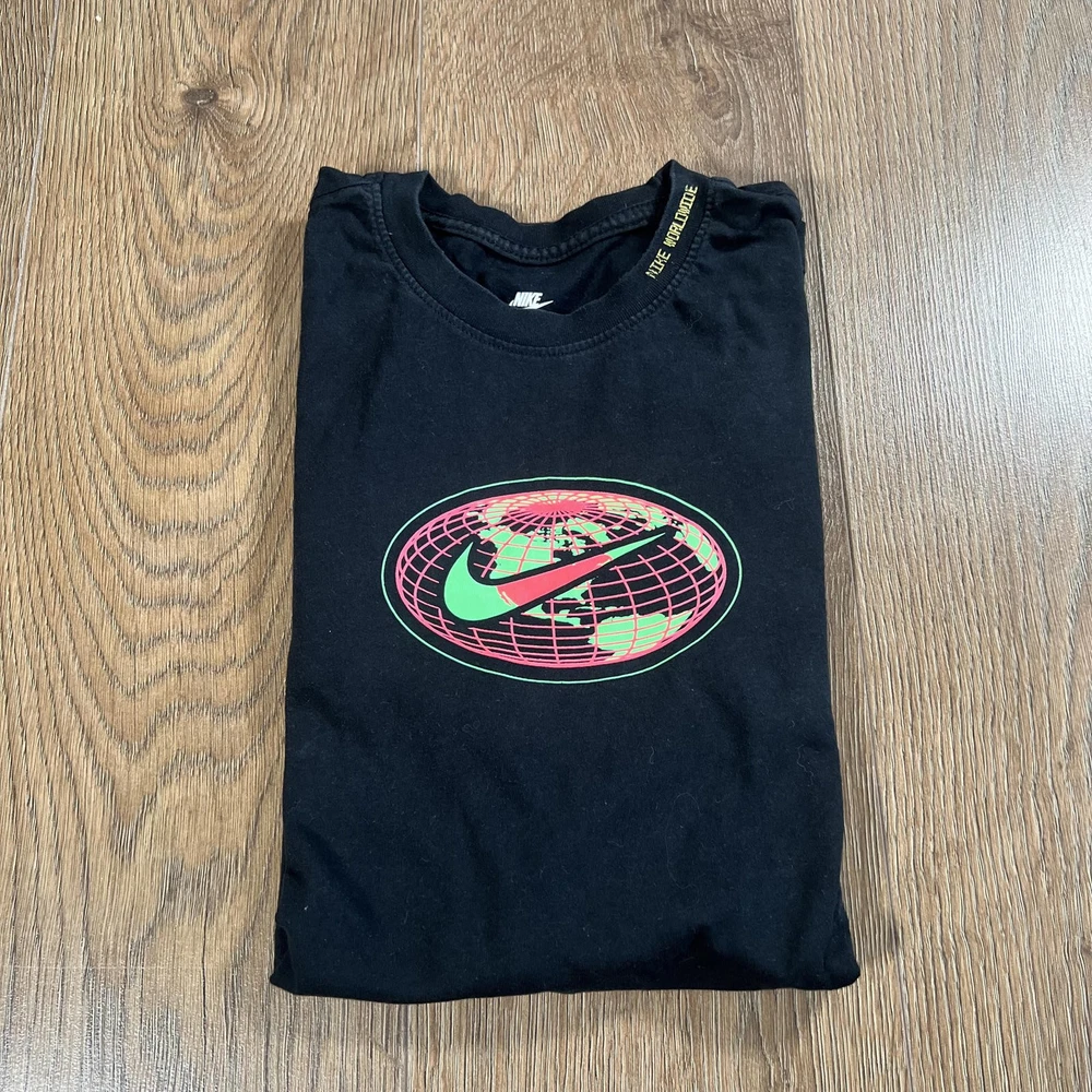π₯ Item: Nike Sportswear "The Nike Tee" Worldwide Graphic T-Shirt π₯ Colour: Black (colour may vary slightly due to lighting β please refer to photos) π₯ Size: S (see measurements) π₯ Style: Crew neck, globe swoosh chest graphic, Nike Worldwide collar detail, hem badge π₯ Material: 100% Cotton π₯ Condition: Good β preloved item Fast shipping, dispatched same or next working day β Nike Sportswear "The Nike Tee" in black featuring a bold neon globe and swoosh graphic on the chest and Nike Worldwide branding on the collar. Woven Nike badge detail on the hem. 100% cotton. Made in Egypt. Style: DJ1374-010. β οΈ Condition: Good preloved condition Lint visible on fabric β shown in photos Slight fading to "Nike Worldwide" collar branding No damage, holes or staining We note all defects to our best ability but please allow margin for error Please check photos as part of description. Colour may vary slightly due to lighting and screen settings. π Measurements (approx.) Chest: ~44 cm flat (~88 cm circumference) Length: ~72 cm Keywords: nike worldwide t-shirt, nike globe swoosh tee, nike sportswear graphic tee, the nike tee, black nike t-shirt, nike DJ1374, neon swoosh tee, nike worldwide, mens nike tee, nike small