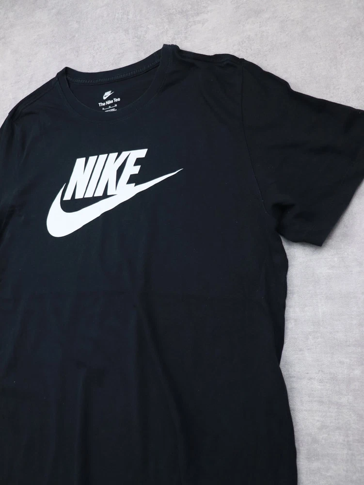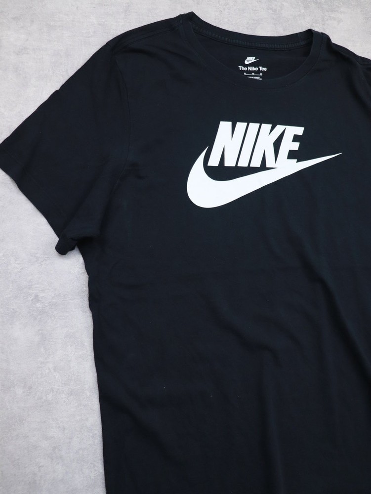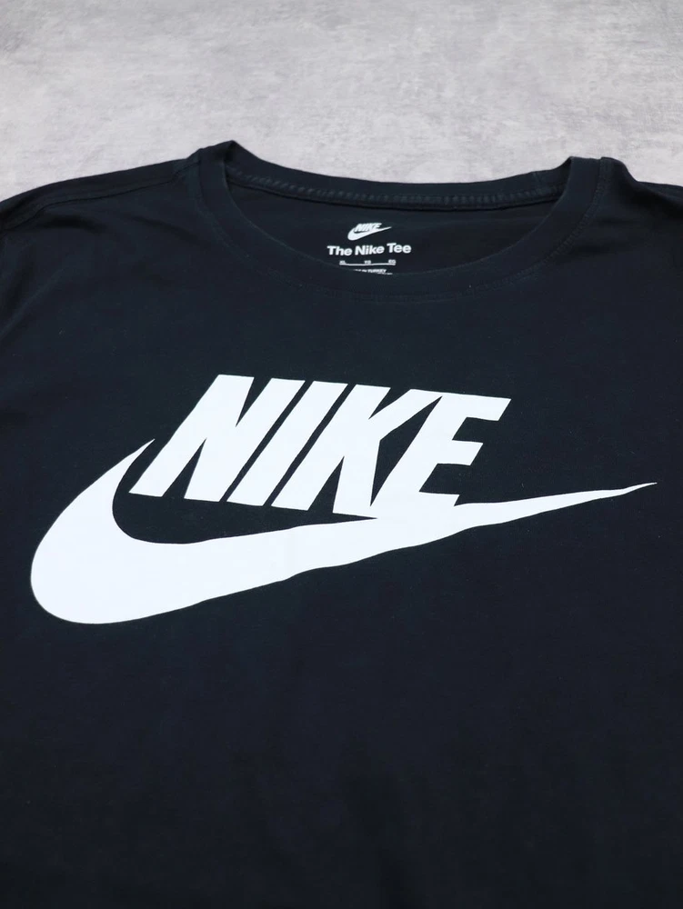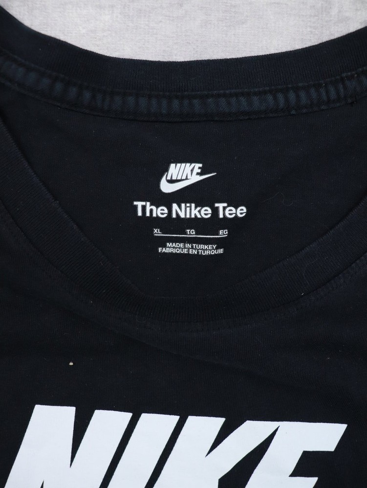Details Item colour: Black Size: XL Condition: Pre-owned Excellent Description Classic Nike graphic print t-shirt in black featuring a bold white logo. This regular fit crew neck tee is crafted from comfortable jersey fabric, perfect for everyday casual wear. Measurement Pit to pit: 22.5 inches Length: 28.5 inches Material Jersey Faults / Flaws: Nothing found on inspection