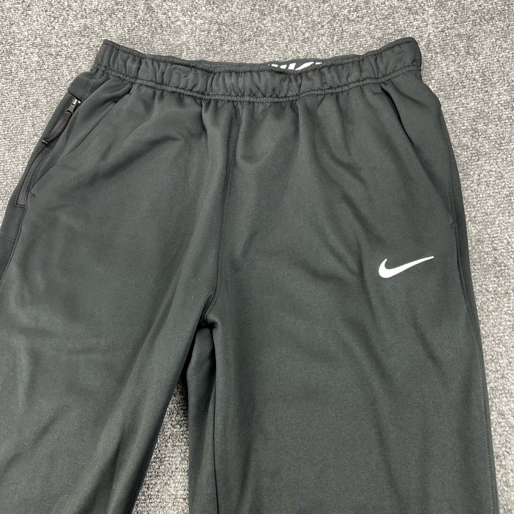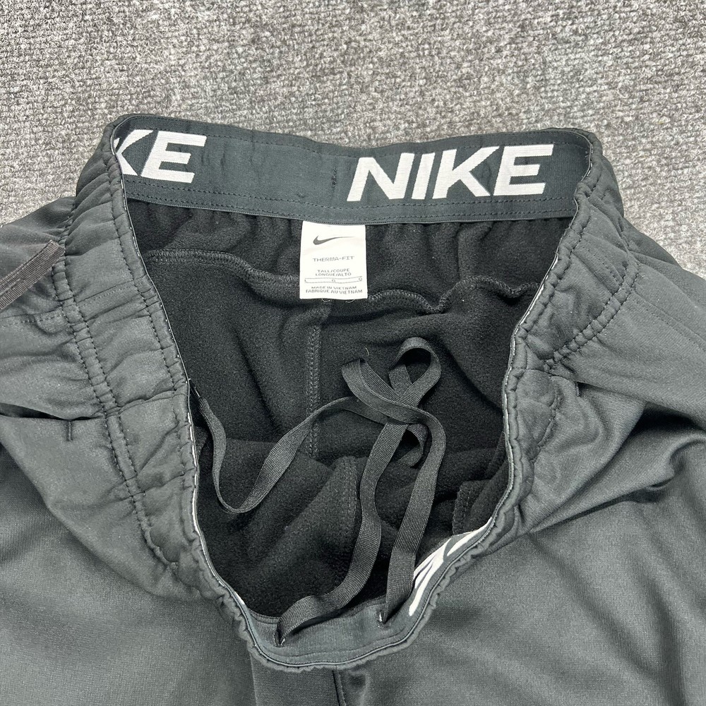 Garment Care: Machine Washable Features: Breathable, Comfort, Easy Care, Lightweight, Moisture Wicking, Pockets, Quick Dry Department: Men Handmade: No Color: Black Compression Area: Waist Leg Style: Tapered Style: Track Pants Compression Level: Moderate Country/Region of Manufacture: Indonesia Theme: none Fit: Regular Brand: Nike Size Type: Regular Character: nike Performance/Activity: athleisure Inseam: 33 in Vintage: No Waist Size: Large Model: Nike Personalize: No Type: Pants Pattern: Solid Closure: Pull On Size: L Product Line: Nike Therma Fabric Type: dri fit Material: Polyester Occasion: Activewear, Casual Season: Fall, Spring, Summer, Winter Personalized: No