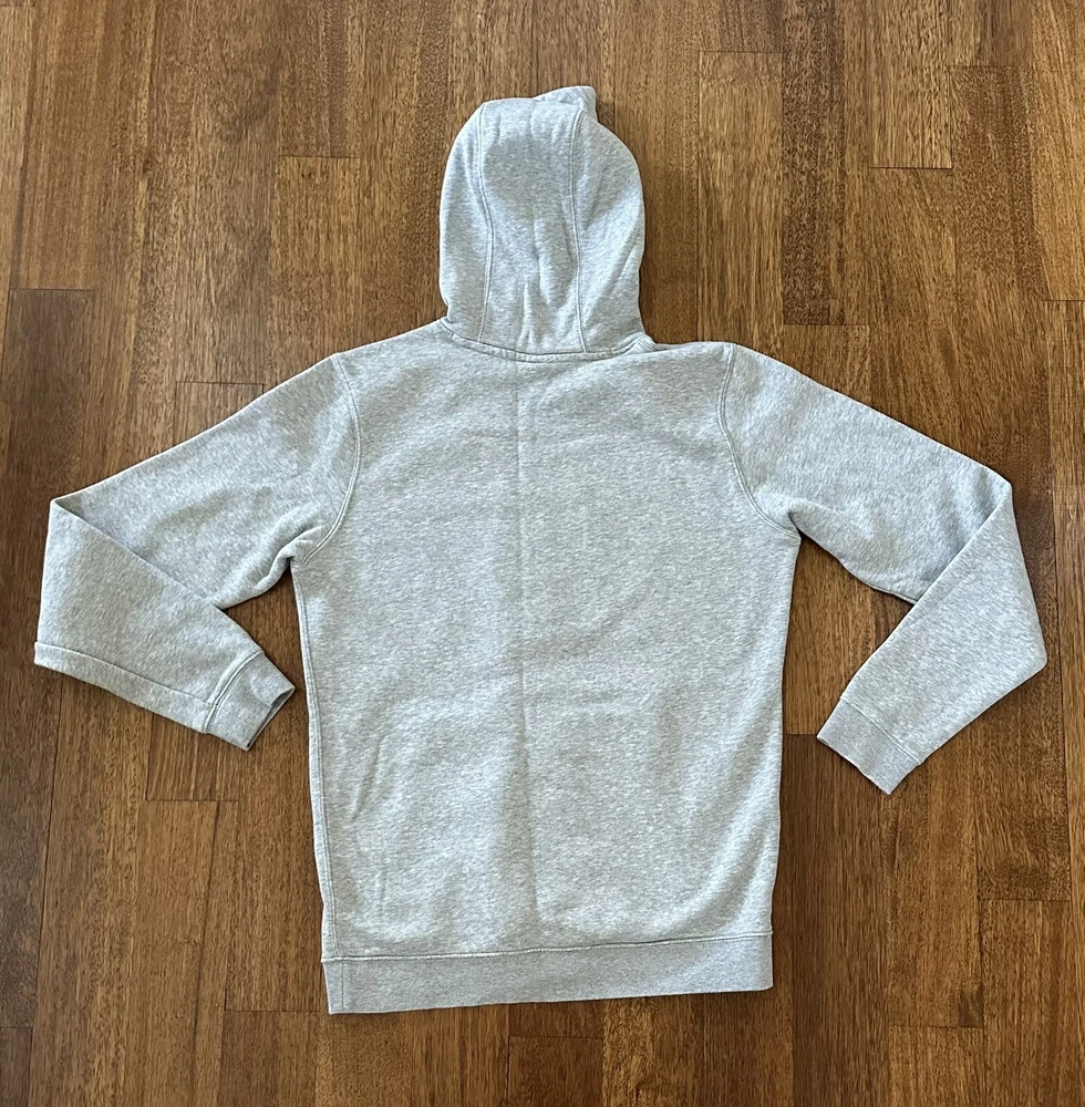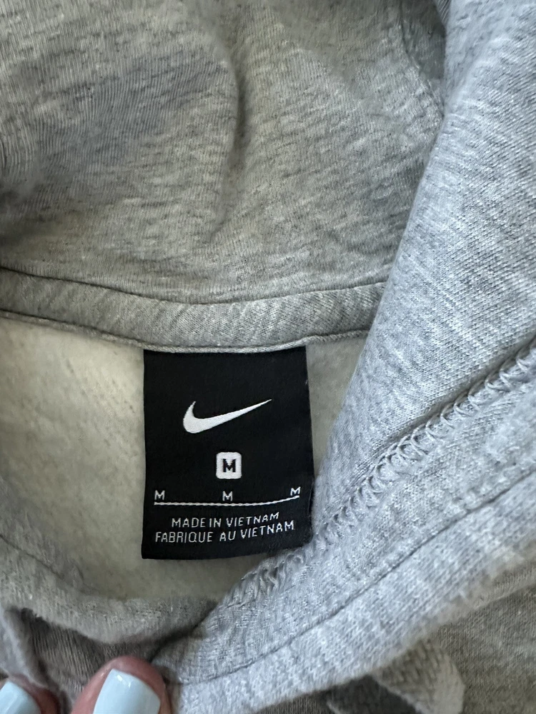 Nike Villanova Wildcats Basketball Hoodie Mens Medium M Gray Navy Swoosh Excellent used condition worn handful of times The screen print placement appears askew (misaligned) not really noticeable when wearing Selling in as is condition Length 28.5 inches Underarm to underarm 22 inches Smoke free pet free home