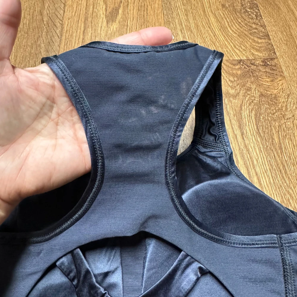 Nike Womens Dri Fit Mesh Cut Out Dark Gray Sports Bra Size Small Swoosh Excellent condition. Removable padding.