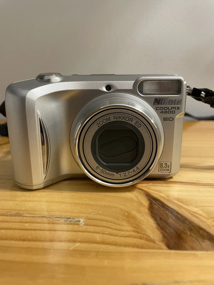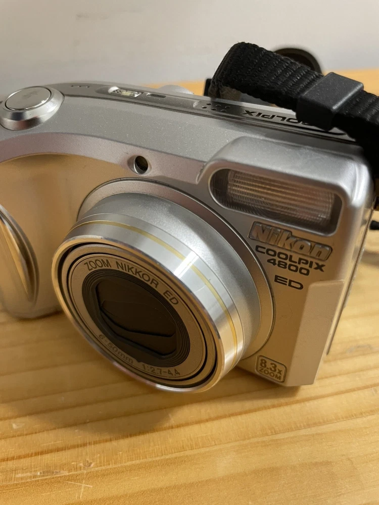 Camera is untested due to no battery . The camera is in overall good condition the battery compartment is clean the on/off button has some wear and please see pictures for details and condition If the camera does not work properly I offer free returns and full refunds The Nikon COOLPIX 4800 is a 4.0MP digital camera in silver, part of the Nikon COOLPIX series. It features an 8.3x optical zoom and 4x digital zoom, providing clear and detailed images. This camera supports various features such as direct print, audio recording, DPOF support, auto power save, and PictBridge support. It uses a Lithium-Ion battery or 2CR5 battery type and weighs 9 oz. It also comes with a strap for convenient carrying while capturing moments.