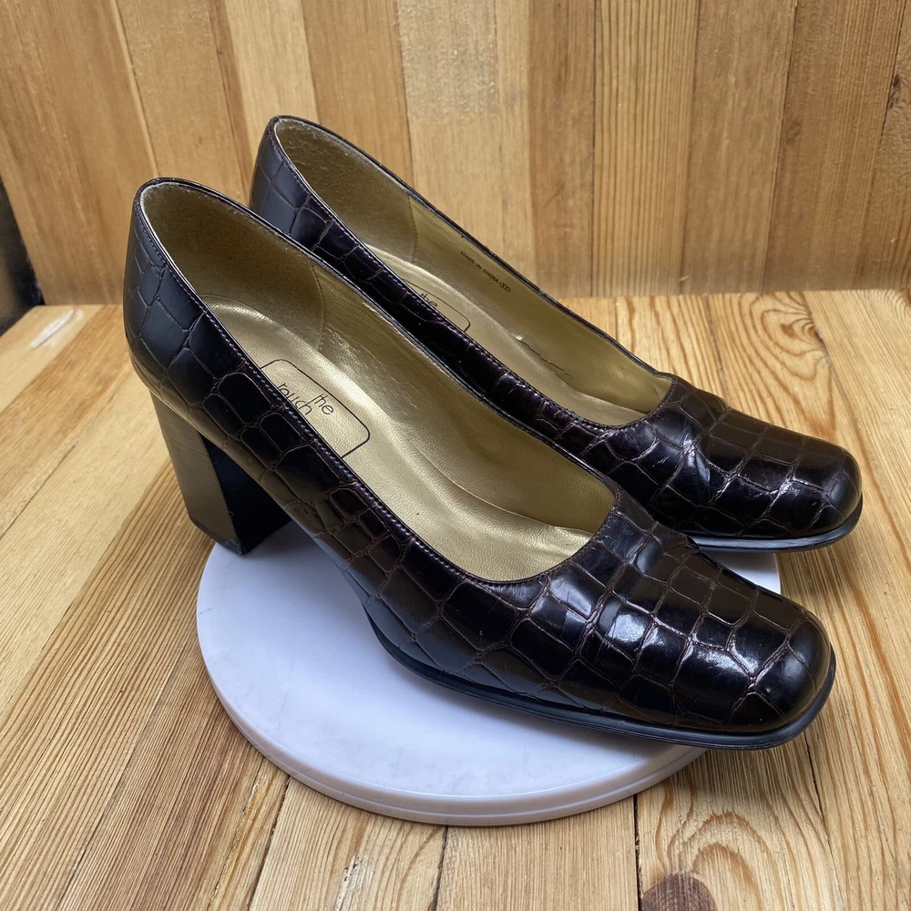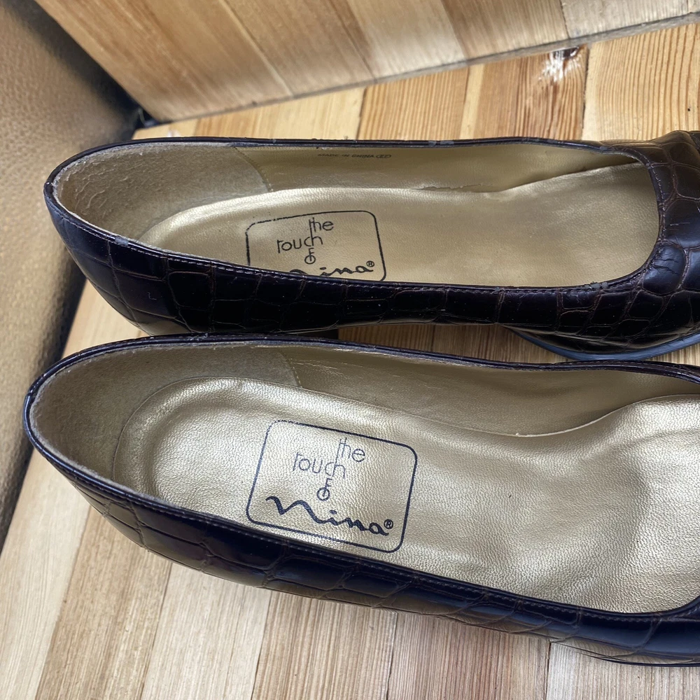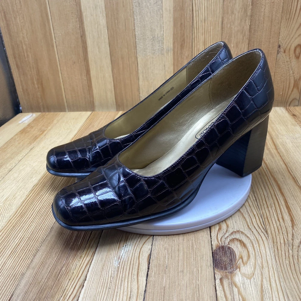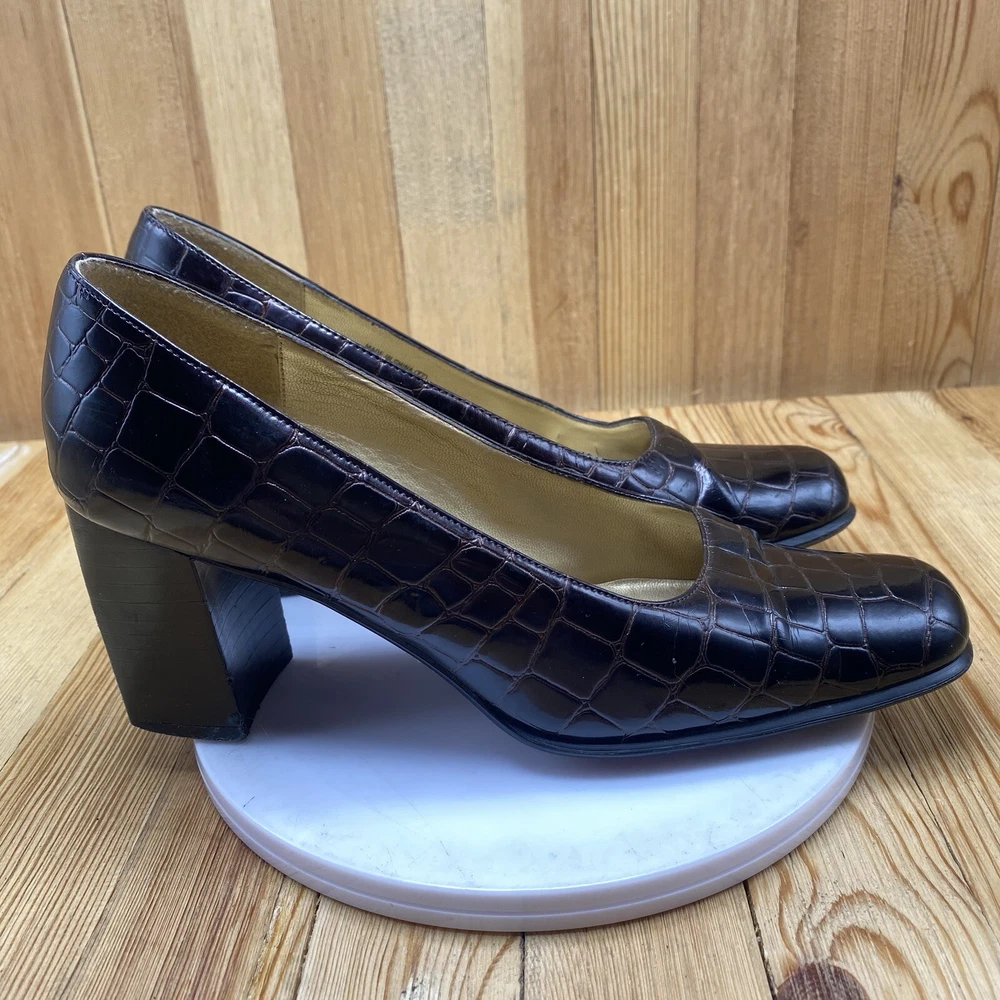 Nina Dress Heels Shoes Women's Size 7.5 Pump Croc Print Square Toe Brown