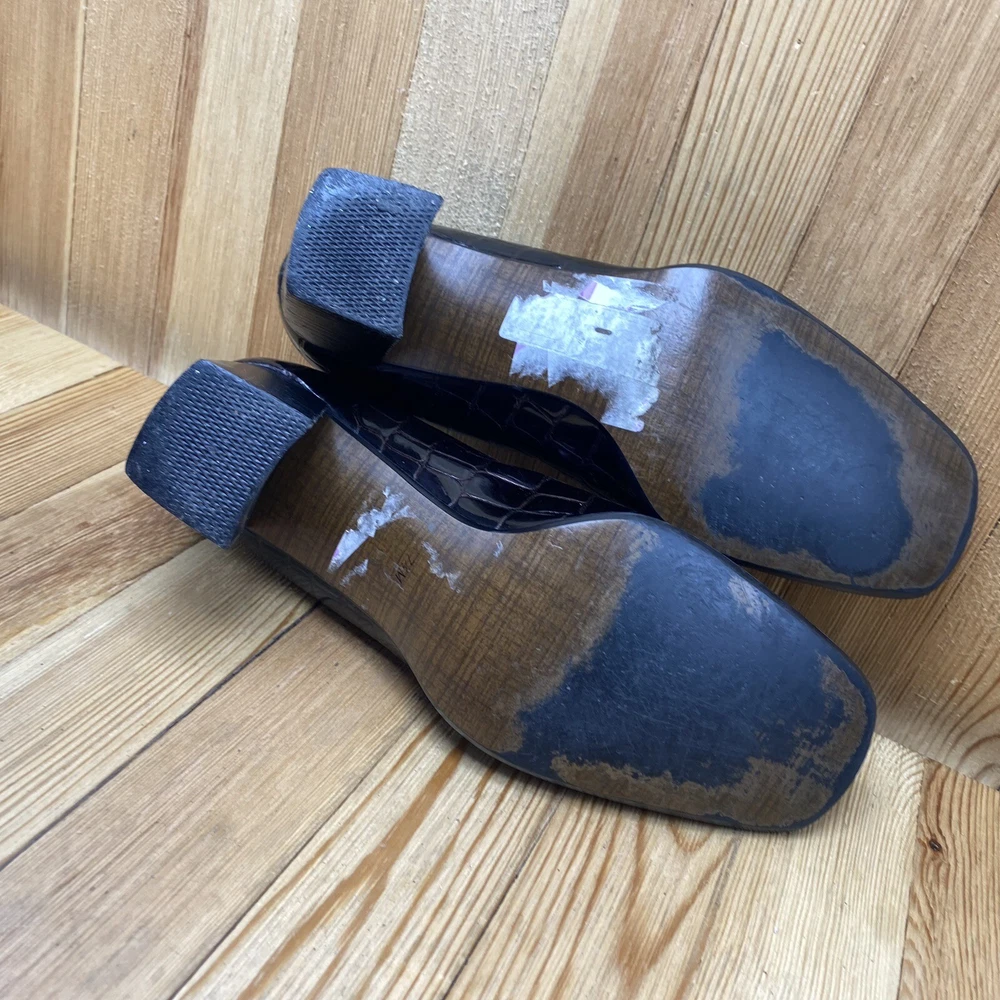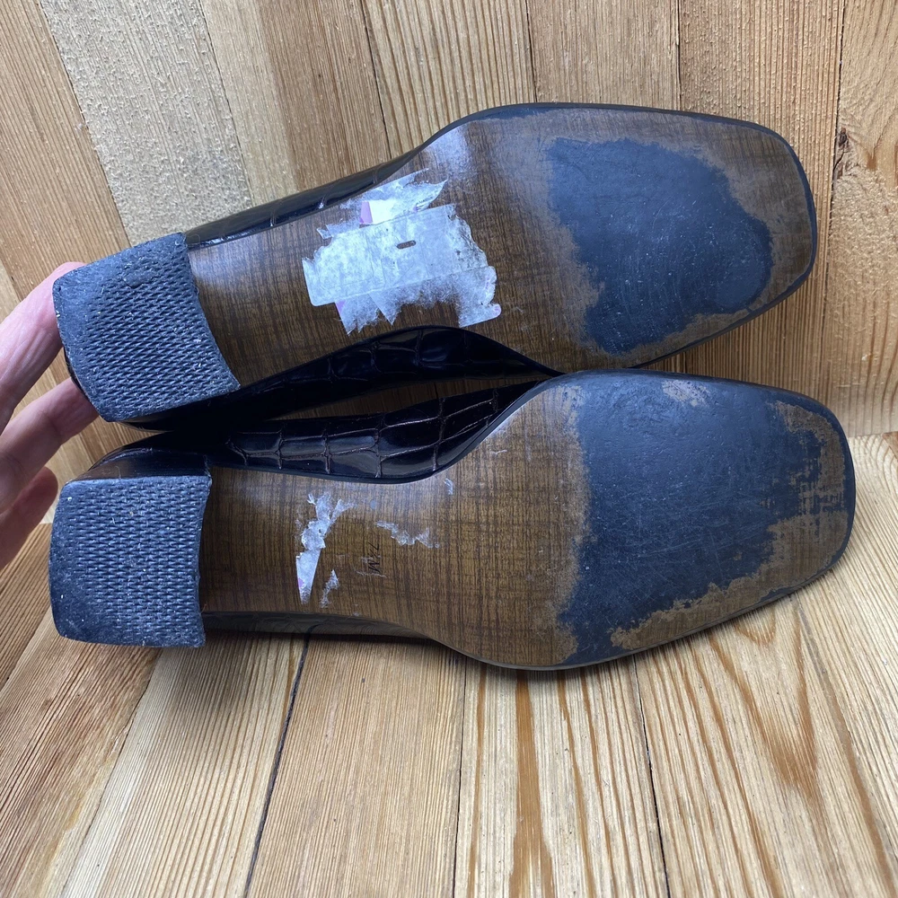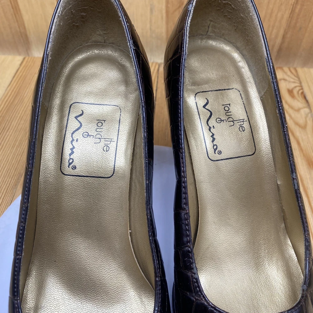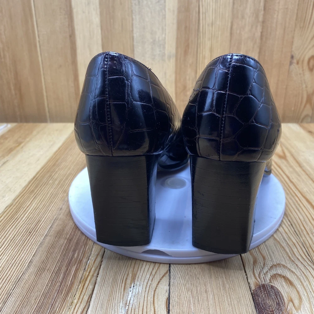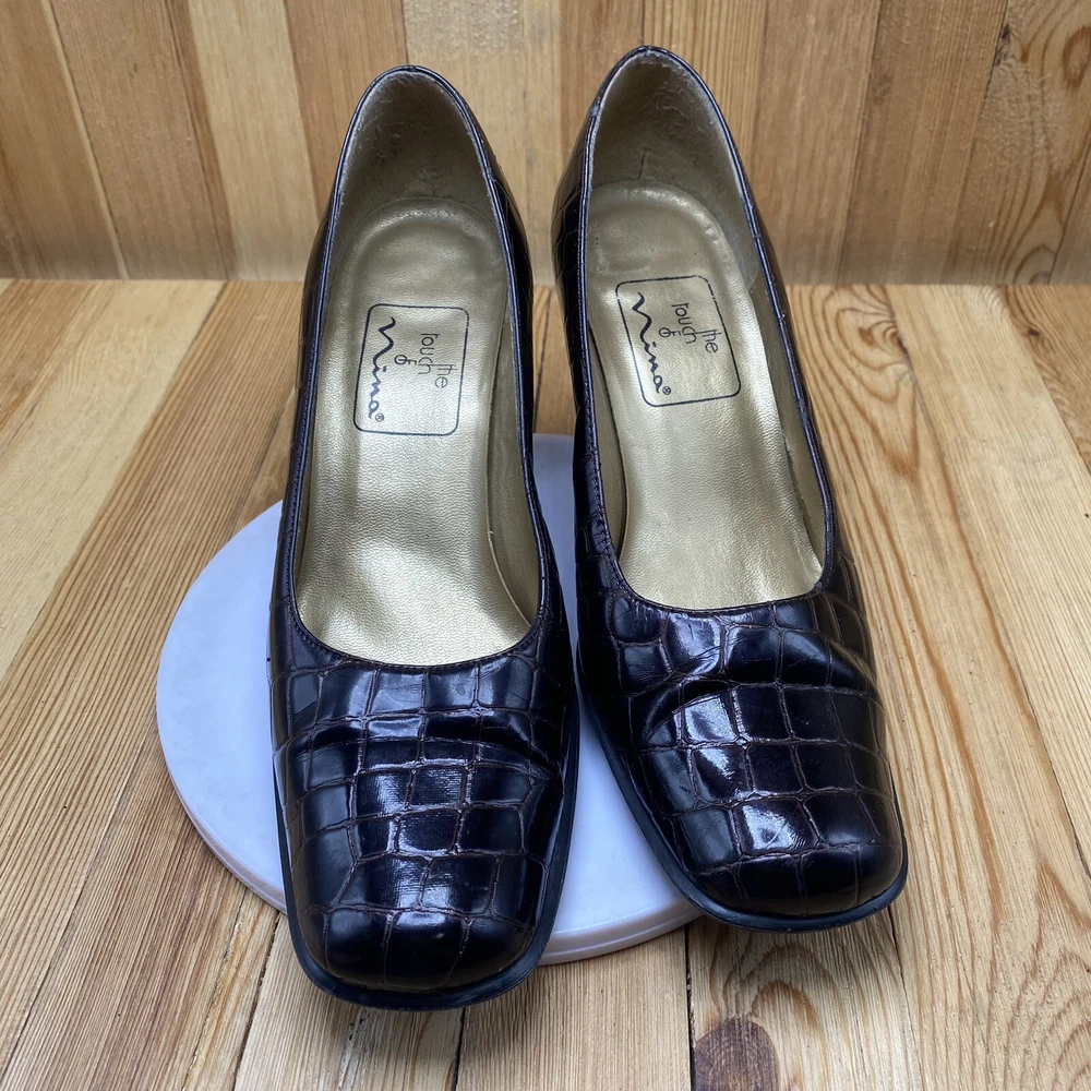 Nina Dress Heels Shoes Women's Size 7.5 Pump Croc Print Square Toe Brown