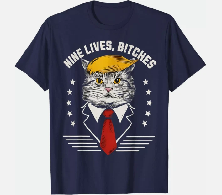 Nine Lives Bitches Funny Cat Political Satire Election 2024 T-Shirt