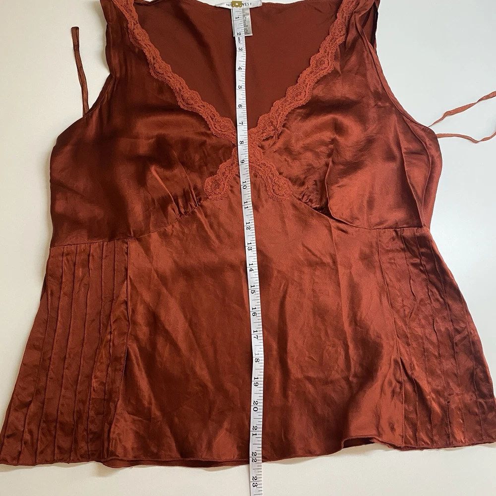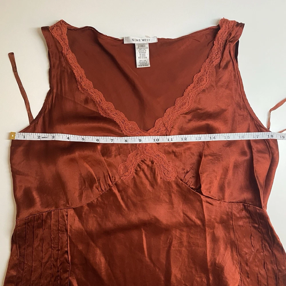 Nine West Womens Y2K Babydoll Silk Camisole Top Sz 14 Feminine Dainty Fairy Lace