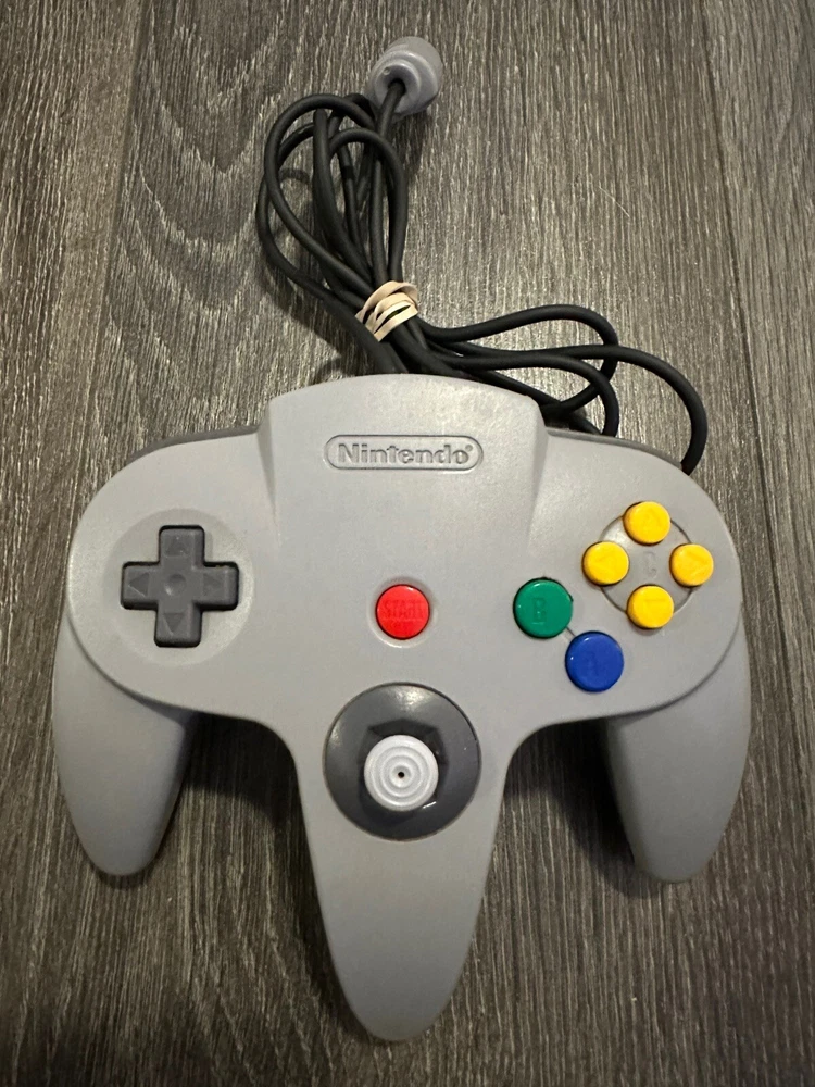 Elevate your gaming experience with the classic Nintendo 64 N64 OEM Authentic Video Game Remote Controller. Designed for precision and comfort, this wired controller ensures seamless gameplay for all your favorite titles on the Nintendo 64 platform. Its sleek gray color and familiar layout will feel familiar to any gaming enthusiast, providing a nostalgic trip back to the '90s gaming era. The controller is compatible with the NUS-005 model and is perfect for players looking for a reliable, high-quality accessory. With a setup that's quick and easy, you can jump straight into the action. It's an essential addition for collectors or gamers aiming to complete their retro gaming setup with an authentic piece from the iconic Nintendo 64 lineup. 1-21-25