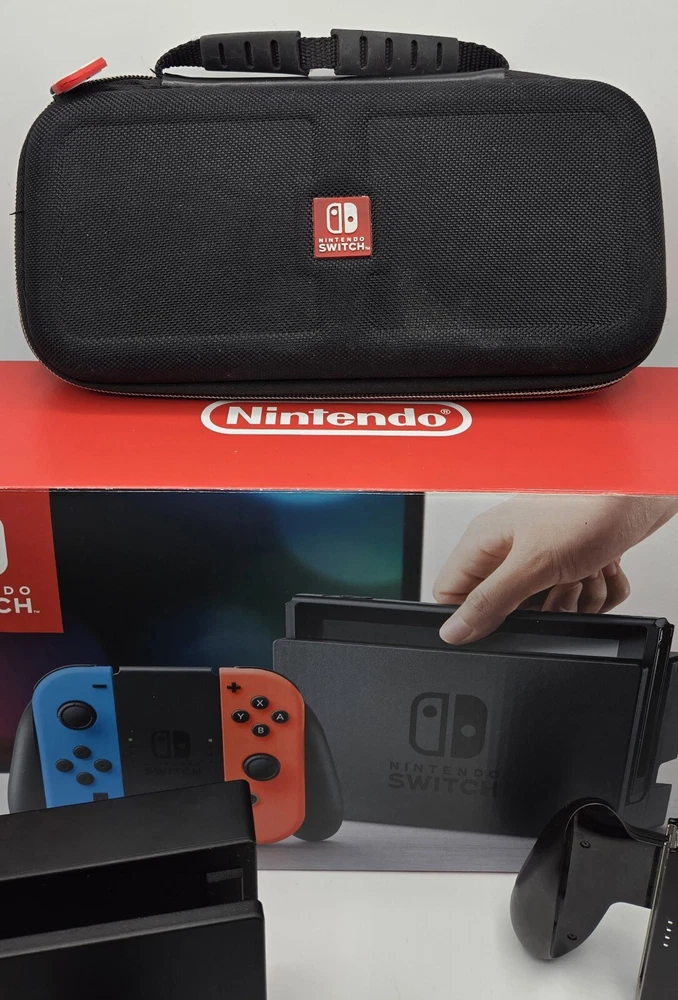 Nintendo Switch 32GB Neon Red & Blue Joy-Con Bundle HAC-001 W/ 3 Games. Nice!