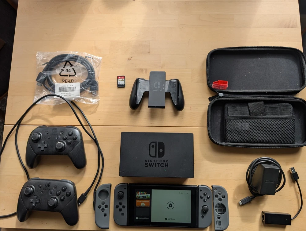 Discover endless gaming fun with the Nintendo Switch 32GB Console. This home console is perfect for all your gaming needs, whether you're playing on the TV or in handheld mode. Comes complete with Dock, dock charging, and Joy-con controller. Additions included are 2 Switch Pro Controller and USB-C ($140). As a bonus you are getting an HDMI cable, 128GB SD card ($30) wired ethernet adapter ($10), travel case and USB-C cable ($10), Chronicles of Mana ($30) game. This is the best bundle possible for any RPG lover looking for some on the move gaming fun or the perfect starter system for a full household console.