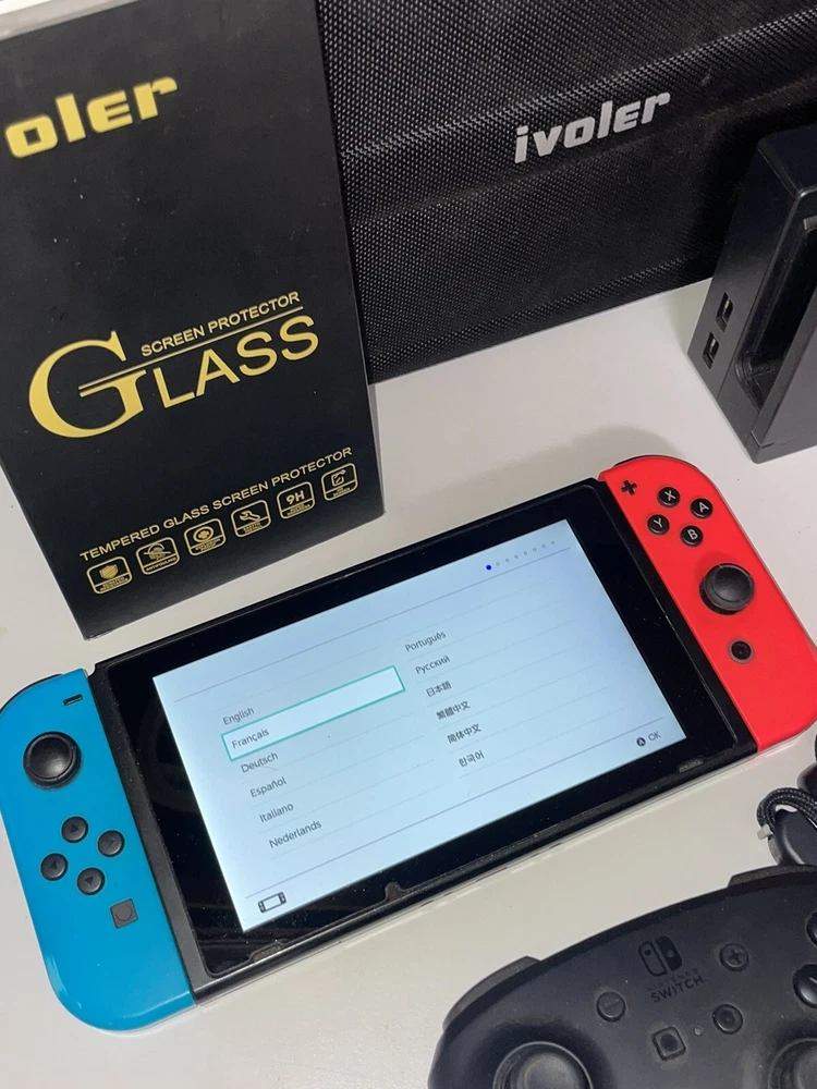 Nintendo Switch along with few games, wireless controller, case and more. The Switch is in ok condition but the screen is perfect due to a screen protector on there since it was new. Great deal!!