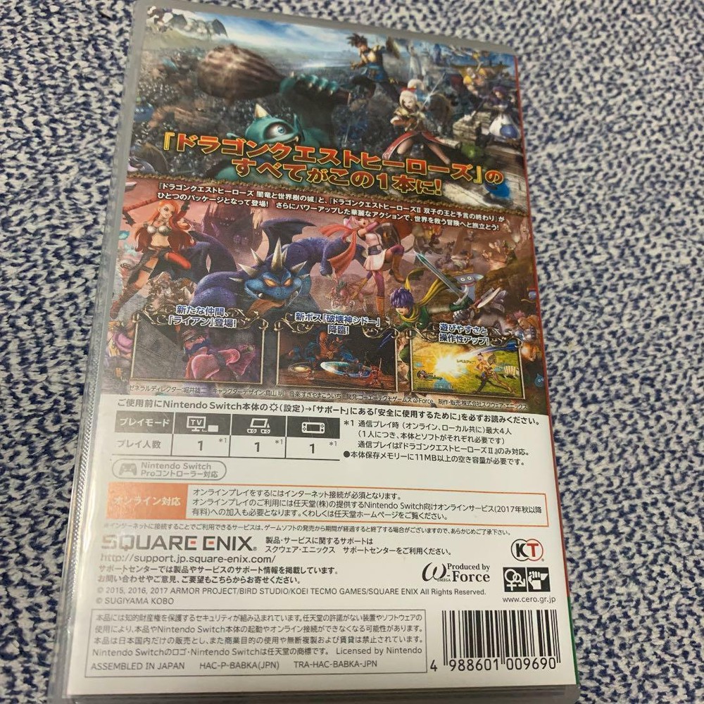Nintendo Switch Dragon Quest Heroes I & II SQUARE ENIX Japan Import Status: USED Note Please read the following before purchasing. PS1, PS2, 3DS, Wii, Wii U, GameCube, Nintendo 64, SNES (Super Nintendo), NES (NES), Game Boy, Xbox, Xbox 360, Sega Saturn, Dreamcast, The mega drive is area locked. If you don't have a Japanese game console, you can't play in regional lock. Region free for PS3, PS4, PS5, PSP, PS Vita, DS, DSLite, SWITCH and Gameboy Advance. The case may be dirty or cracked. The CD may have scratches that will not interfere with playing the game. Shipping Standard shipping: Ships by FedEx or DHL (with tracking number) Depending on the region, it may be shipped by UPS or EMS. It will arrive in 5-10 days after shipping. Economy shipping: Shipped by e-packet (with tracking number) Depending on the region, it may be shipped in small packets. It will arrive 14 to 21 days after shipment. Handling time: Ships within 10 business days of purchase.
