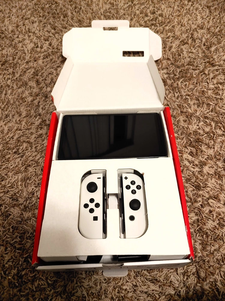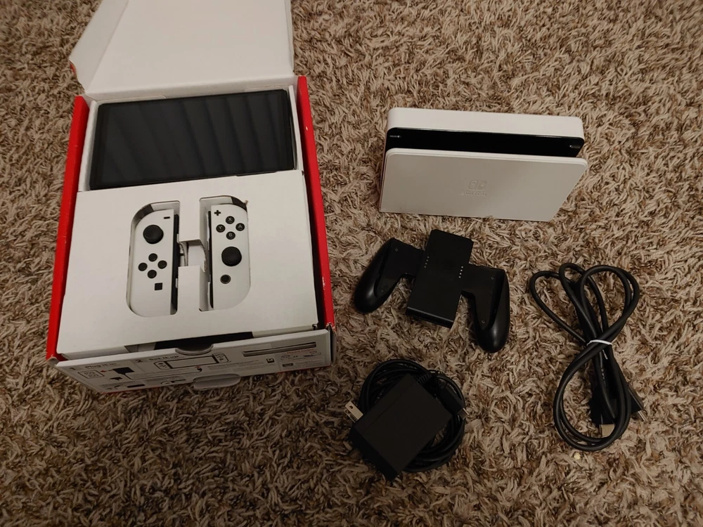 Everything with original box for the OLED Switch. The tablet is in good condition and has some wear. Has been kept with a screen protector. Everything else is excellent.
