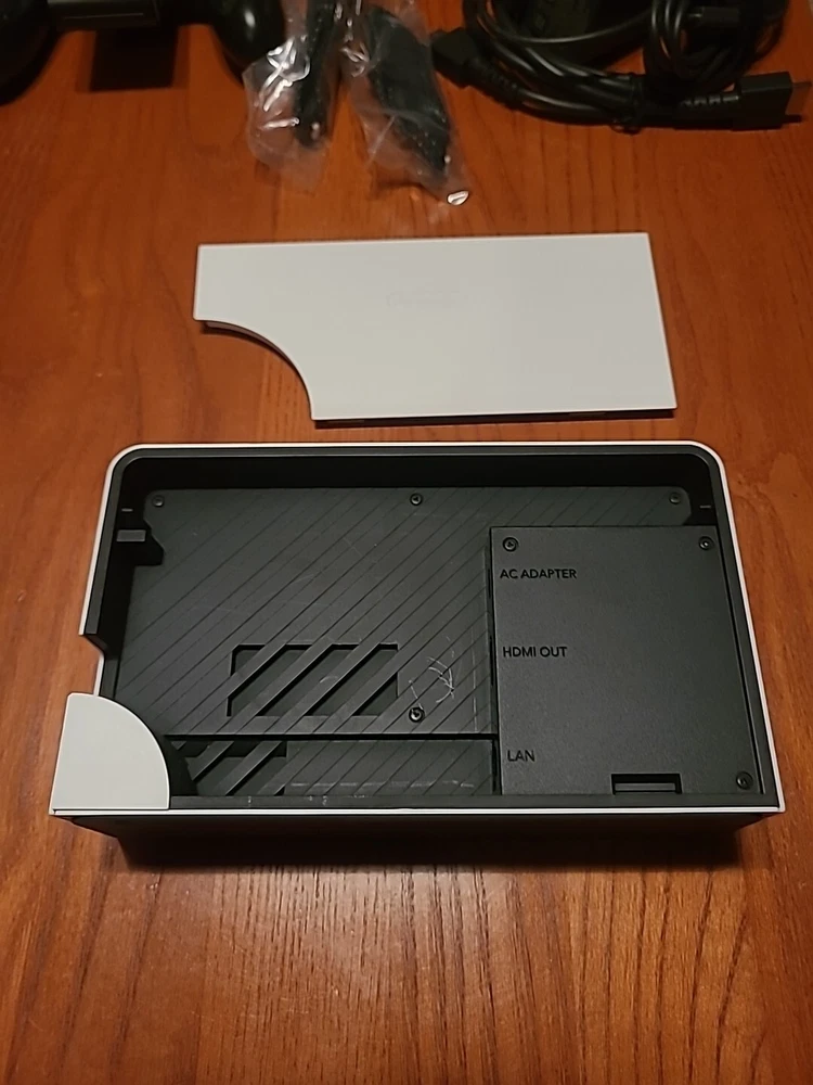 Nintendo Switch Oled Bundle The Console: Includes an OLED model switch, the dock, the power adapter, an HDMI cord, a joycon grip, joycon straps, and a set of joycons. Everything is in good condition. There is some residue on the back of the switch from a sticker I used to have on there. The screen has no scratches that I'm able to see. Includes the original box, but not the interior packaging. There is a 128 GB micro SD already installed. ***THIS DOES NOT INCLUDE THE ORIGINAL WHITE JOYCONS, ONLY THE BLUE/YELLOW ONES SHOWN*** Accessories: The console has a glass screen protector already installed. An Atrix carrying case is included. It also includes a charging station that can hold 4 joycons or 2 pro controllers. Games: Includes Minecraft, Terraria, and Animal Crossing New Horizons. This was my personal console; I did my best to keep it clean and in good condition. It has already been factory reset and may need to be updated on startup. Everything will be packaged with the utmost care. Feel free to reach out with any questions or concerns! Open to offers!
