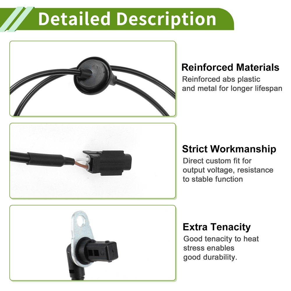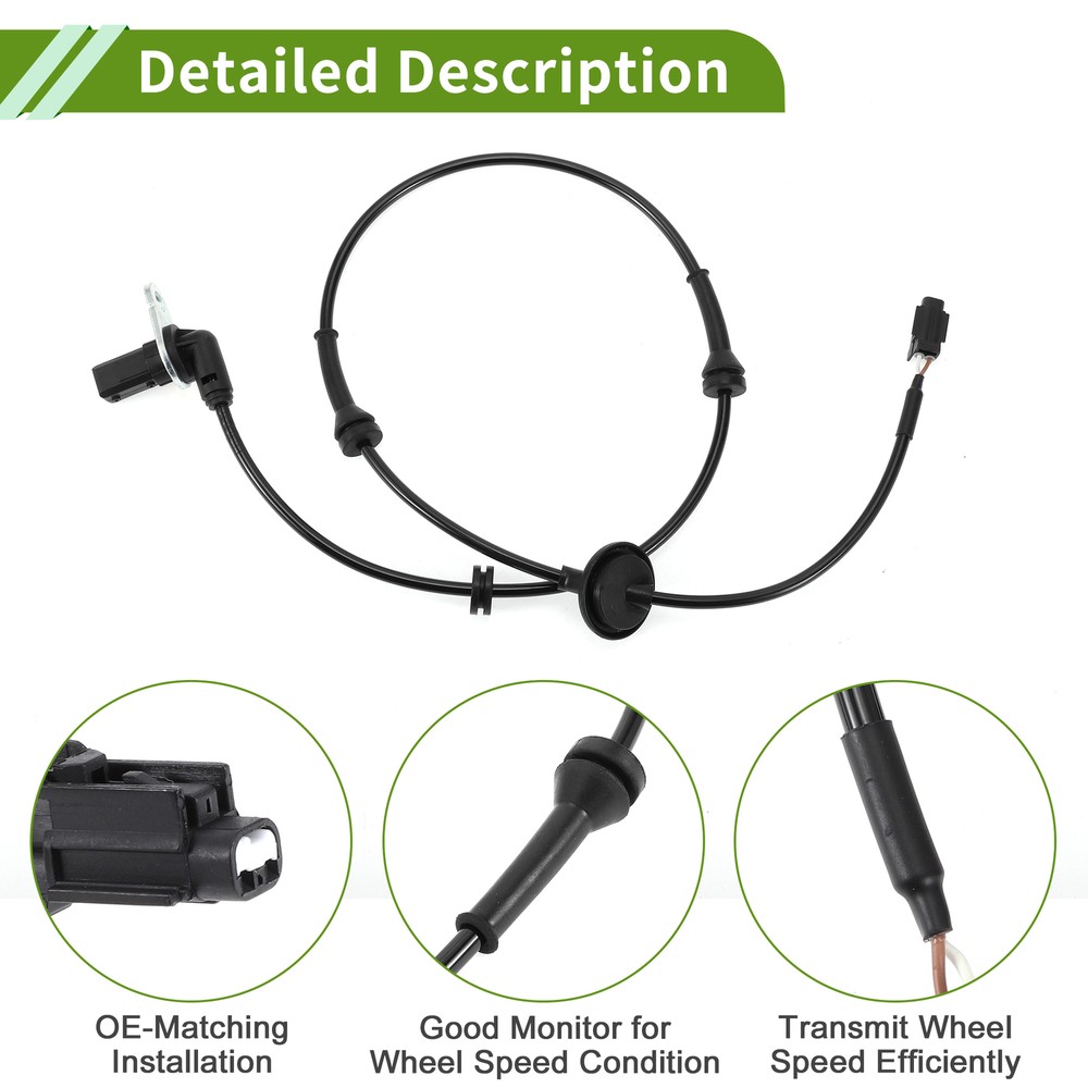 Document Model:for Nissan Maxima A34 Series 2003-2008 V6 3.5LOE Number:479117Y000Application:Pin Number: 2 PinsPlacement on Vehicle: Front LeftMaterial: Plastic, Rubber, MetalColor: BlackPackage Content: 1 Pc ABS Wheel Speed SensorProduct Characteristics:ABS wheel speed sensor plays an important role in monitoring your wheels' speed and sending signals to the ABS controller.Our reinforced wheel speed sensor will keep your car from skidding or sliding when you brake suddenly.You will get accurate and rapid signal measurement of wheel speeds to optimal braking performance.Made of quality abs plastic and metal materials to withstand the harsh road conditions.Easy To Install: Easy Installation.Remove the car wheel, unplug the ABS sensor and sensor connector, then replace the new abs sensor.Attention:This is Non-OEM product, accessory Only!Please make sure your vehicle information before placing an order! Hot Item Shop Category New Arrival ABS Wheel Speed Senor ABS Sensor No.479117Y000 for Nissan Maxima Front Left Model: for Nissan Maxima A34 Series 2003-2008 V6 3.5L OE Number: 479117Y000 Application: Pin Number: 2 Pins Placement on Vehicle: Front Left Material: Plastic, Rubber, Metal Color: Black Package Content: 1 Pc ABS Wheel Speed Sensor Product Characteristics: ABS wheel speed sensor plays an important role in monitoring your wheels' speed and sending signals to the ABS controller. Our reinforced wheel speed sensor will keep your car from skidding or sliding when you brake suddenly. You will get accurate and rapid signal measurement of wheel speeds to optimal braking performance. Made of quality abs plastic and metal materials to withstand the harsh road conditions. Easy To Install: Easy Installation.Remove the car wheel, unplug the ABS sensor and sensor connector, then replace the new abs sensor. Attention: This is Non-OEM product, accessory Only! Please make sure your vehicle information before placing an order! Item Specifics Net Weight 77g OE/OEM Part Number 479117Y000 Manufacturer Part Number 479117Y000 Brand X AUTOHAUX Placement on Vehicle Front Left Product Name ABS Wheel Speed Sensor Shell Color Black Package Content 1 Pc ABS Wheel Speed Sensor Note This is not oem product,accessory only. You Should Know If you have any questions, please feel free to contact our customer service. Our response will be faster than eBay ! Our Handling Time: within 24 hours on weekdays eBay Handling Time: 72 hours About Us Shipping Feedback Payment Contact Us About Us Angstrom Autohaus is based in Hong Kong, our group comprises factories in Asia that manufacture OEM and aftermarket automotive parts and accessories. We believe in FACTORY DIRECT purchases. Our mission is to deliver Lower Prices and Better Quality to consumers and distributors wherever, whenever. We operate from a distribution center in Hong Kong, where we perform sourcing, quality control and fulfillment. We strive to ensure that our products are reliable, updated and that our transactions are smooth and speedy. We are positioned to bring you the latest consumer automotive aftermarket parts and accessories globally and round the clock. We are proud to have served over 500, 000 ebay buyers worldwide. Shipping Import duties, taxes and charges are not included in the item price or shipping charges. Buyers are responsible for these charges. Please check with your country's customs office to determine what these additional costs will be prior to bidding/buying. Note that delivery times may vary, particularly during peak periods or inclimate weather conditions. All items will be dispatched from our warehouse in China or Hong Kong directly. Due to Custom restrictions, we do not ship lighters to US We cannot ship on weekends and we do not offer Saturday, Sunday or holiday delivery. All our items will be shipped to buyer's PayPal address, please confirm your address on PayPal before you bid. Feedback We left positive feedback for you after receiving payment. Your feedback is very important for us, positive feedback and 5 Score DSR is highly appreciated. Please let us know before leaving any negative feedback or 1 point, 2 point low DSR or open any disputes on Paypal and Ebay, please give us the opportunity to resolve any problems and we will try our best to satisfy your needs. If any question, please feel free to contact us via 'Ask seller a question', We try our best to reply to your emails as soon as possible, due to high volume of daily incoming emails and time zone difference, we may not be able to reply your emails immediately.Please allow 1-2 business days for us to response. Contact Us This is the payment method we can accept: Contact Us Please email us to resolve any problem before you leave any feedback to us. We will reply you via email ASAP, if no response for you within 48 hours, please check the spam / junk folder in your mail box. Description Policy ABS Wheel Speed Senor ABS Sensor No.479117Y000 for Nissan Maxima Front Left Model: for Nissan Maxima A34 Series 2003-2008 V6 3.5L OE Number: 479117Y000 Application: Pin Number: 2 Pins Placement on Vehicle: Front Left Material: Plastic, Rubber, Metal Color: Black Package Content: 1 Pc ABS Wheel Speed Sensor Product Characteristics: ABS wheel speed sensor plays an important role in monitoring your wheels' speed and sending signals to the ABS controller. Our reinforced wheel speed sensor will keep your car from skidding or sliding when you brake suddenly. You will get accurate and rapid signal measurement of wheel speeds to optimal braking performance. Made of quality abs plastic and metal materials to withstand the harsh road conditions. Easy To Install: Easy Installation.Remove the car wheel, unplug the ABS sensor and sensor connector, then replace the new abs sensor. Attention: This is Non-OEM product, accessory Only! Please make sure your vehicle information before placing an order! Item Specifics Net Weight 77g OE/OEM Part Number 479117Y000 Manufacturer Part Number 479117Y000 Brand X