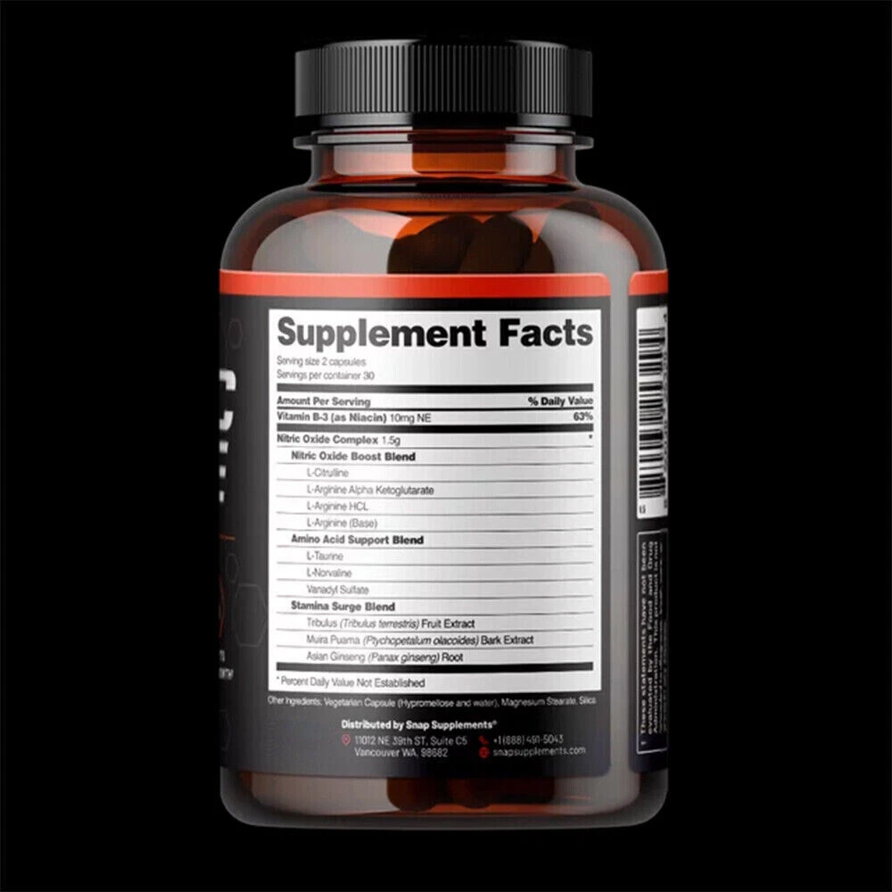 Formulated with L-Arginin, L-Citrulline, Amino Energy and Plant Botanicals. Promote Nitric Oxide Flow for Stamina, Endurance and Top Performance. Support Healthy Blood Pressure, Lung Capacity and Cardio Health. Naturally Boost Energy Pre Workout and Improve Muscle Recovery Post Workout. Promote Healthy Veins, Blood Vessels and Support Heart Health.