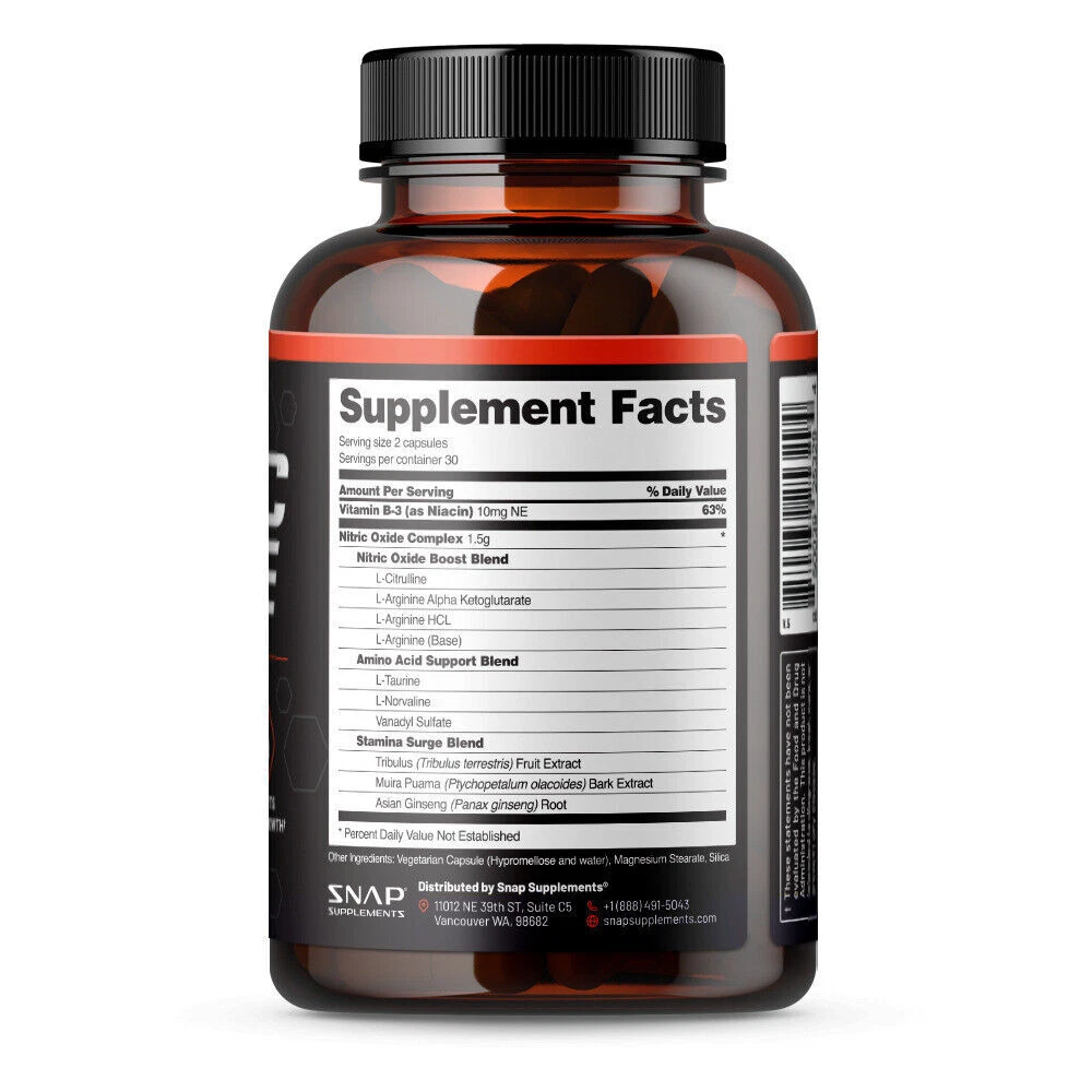 Nitric Oxide Booster Supplement - L-Arginine, L-Citrulline 1500mg - 60 Capsules