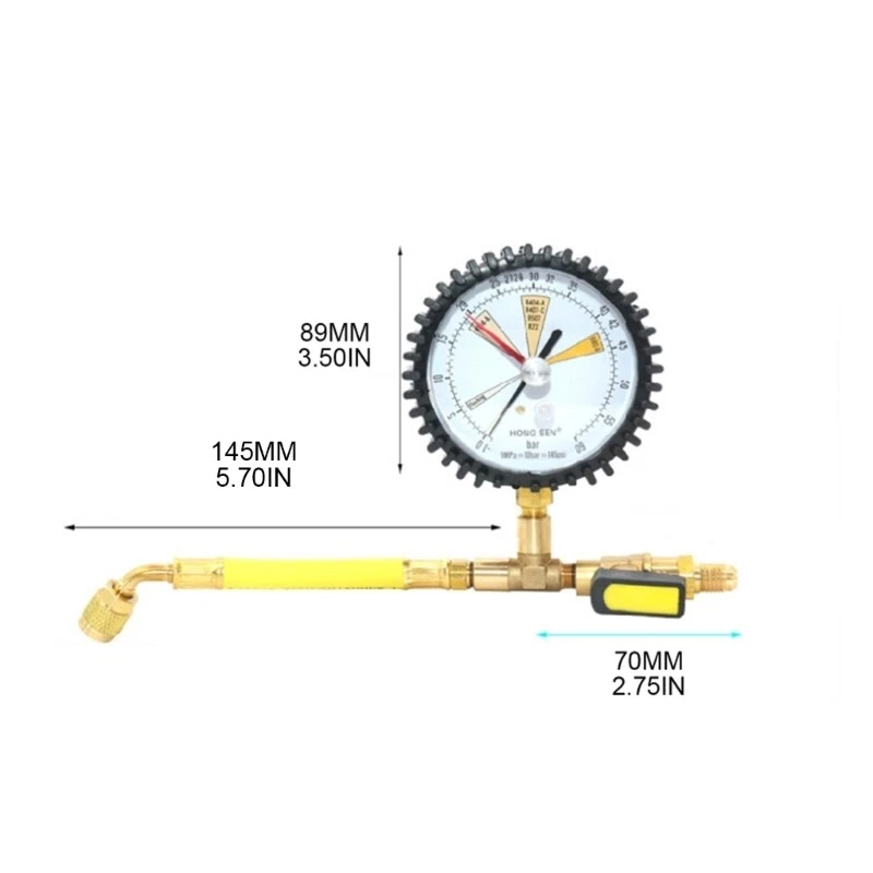 brand new and high quality. Features: Made of high high quality material, solid, durable and good long service for time. With spherical structure for replaceable regular for head, easy and convenient. Simple and easy to use, allowing you to quickly. Suitable for R134a, R22, R407C, R410A. It can be used to air conditioning, car/central air conditioning pressure test. Pressure Test Gauge only, other accessories in the picture is not included! Specification: Material: Brass Pressure 60bar for Structure: Spherical Size: 4SAE British System Size: app.23 x 16.5 x 5cm/9.06 x 6.50 x 1.97in Color: Brass Quantity: Pc Note: No retail package. Please allow 0-1cm error due to manual measurement. pls make sure you do not mind before you bid. Due to the difference between different monitors, the picture may not reflect the actual color of the item. Thank you! Package includes: x Nitrogen Pressure Test Gauge