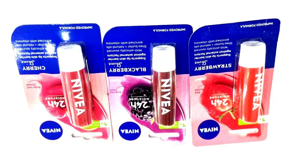 About Specifications In Nivea Lips Balm Care :- Dear friends, taking care of our body is a very important part for us - Now Get Kissable Lips Ready :-)) Magnify your charm with Nivea A Kiss of Flavor Lip Tint that gives your lips a juicy, fruity flavor with a subtle color. This lip tint is enriched with almond oil and Vitamin E that help provide long-lasting moisturization. The result is soft, smooth and fruity-tasting lips. This innovative and caring formula has natural ingredients that help deliver long-lasting moisturization for soft and supple lips. Its unique blend of fruity flavor and a tint of color make your lips irresistible. A Closer Look: Nivea A Kiss of Flavor Lip Tint is an easy and subtly colored lip balm that leaves your lips feeling soft and looking fuller. Indulge in the sweetness of a Cherry kiss Everything we do is designed to achieve the ultimate kiss. *= If you need anything in bulk or lot, then you can contact us, we will try to give you better quality and rate. Thank you from the bottom of my heart for visiting our store and shopping :)