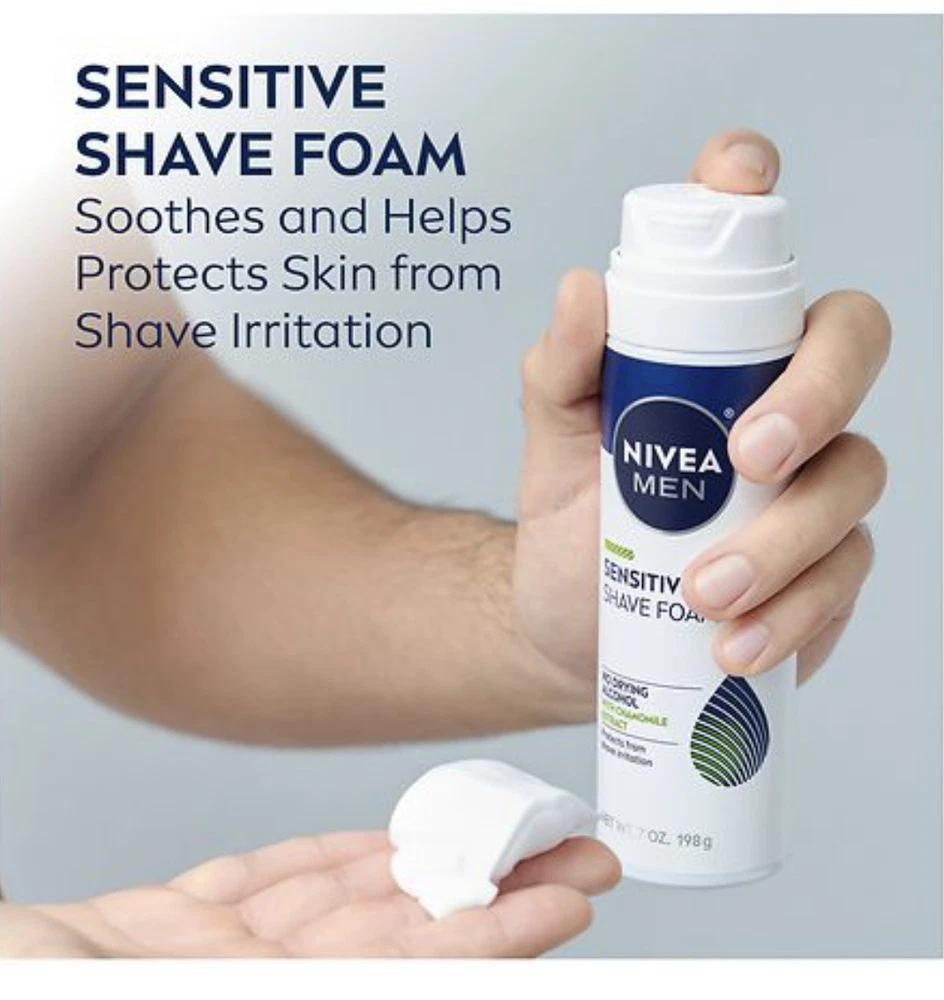 Nivea MEN Sensitive Shave Foam Shaving Cream 7 oz NEW.