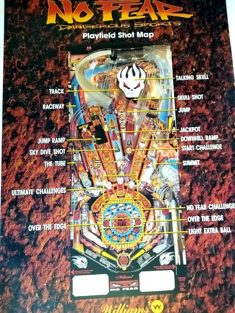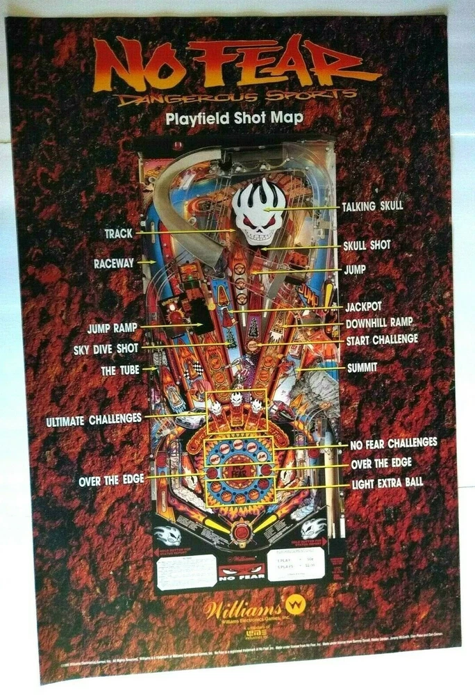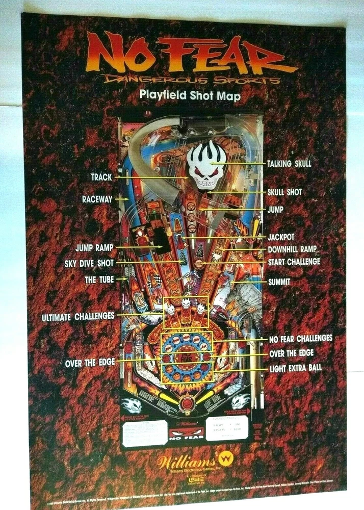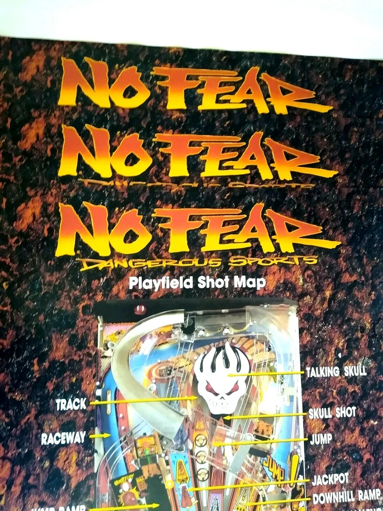 Lot of (10) all the same original promotional large wall posters (not a flyer) for the Williams No Fear Dangerous Sports pinball machine. Size is 36.25" X 24.25". Perfect for framing. Makes great wall art for the man cave or a unique gift idea. Minor wrinkles and storage wear only. More pinball, jukebox, slot machine, and arcade game items for sale in our store. SHIPPING Bundle and save by using cart and making single payment. International buyers are responsible for any import fees/taxes. ABOUT US Seller of vintage collectibles, gifts, advertising, artwork, original pinball flyers, vinyl records, video arcade flyers, pinball machine translites, game manuals, score cards, magazines, antique Halloween and holiday postcards, Christmas items, super hero memorabilia, horror themed art.