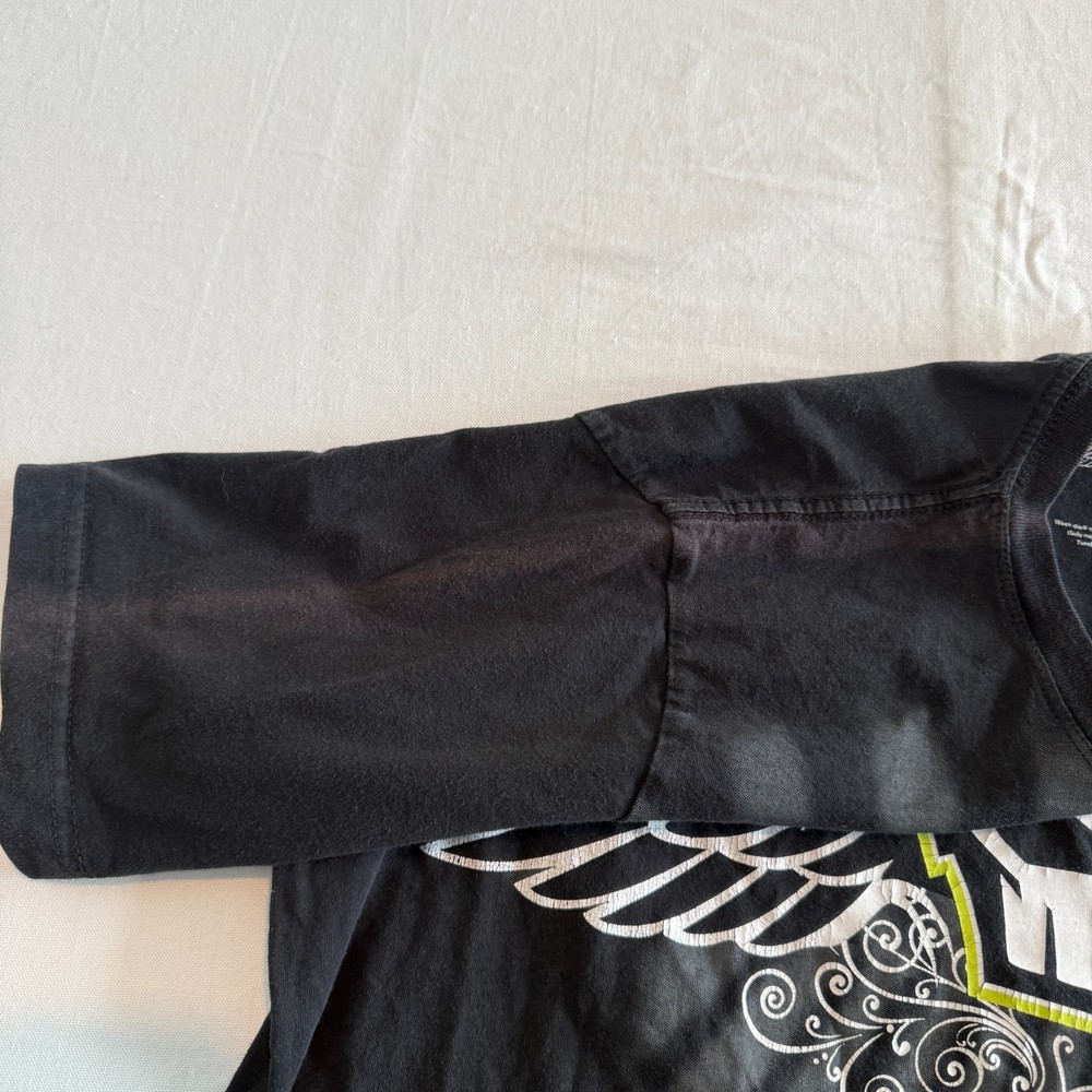 Condition: Sun bleaching at the shoulder and sleeve (one side). Cracking on graphics. Measurements in photos. *Please compare measurements to something you already own. *Next business day shipping! *Thank you for supporting my small business!