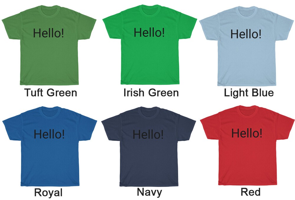 Colors: Available in 12 colors: black, white, ice grey, sport grey, charcoal, military green, tuft green, irish green, light blue, royal, navy and red. The default color is black . If you want to change the color, please let us know via Message or Note to seller. Key features: Gildan 5000 Unisex Heavy Cotton Tee 100% Cotton (fiber content may vary for different colors) Medium fabric (5.3 oz/yd² (180 g/m²)) Classic fit Tear away label Runs true to size Shipping: Almost all orders are shipped within 2-5 business days from the order date. All packages will be shipped via USPS. Please allow for up to 5-7 business days for your order to arrive after it is shipped. Return: Please be careful and double-check the size and color. Our return policy doesn't cover products ordered in the wrong size, color or simply doesn't like the product. If there is a problem with the received products, please get in touch with us within 30 days of product delivery. We offer a free replacement or a refund in case of a damaged product or a manufacturing error. Other Products: We also can print this design on Hoodies, Sweatshirts, Long Sleeves, Tank Tops or Face Masks, Phone Cases, Socks, Mugs, Posters, Wall Decals. Please feel free to contact us for more details.