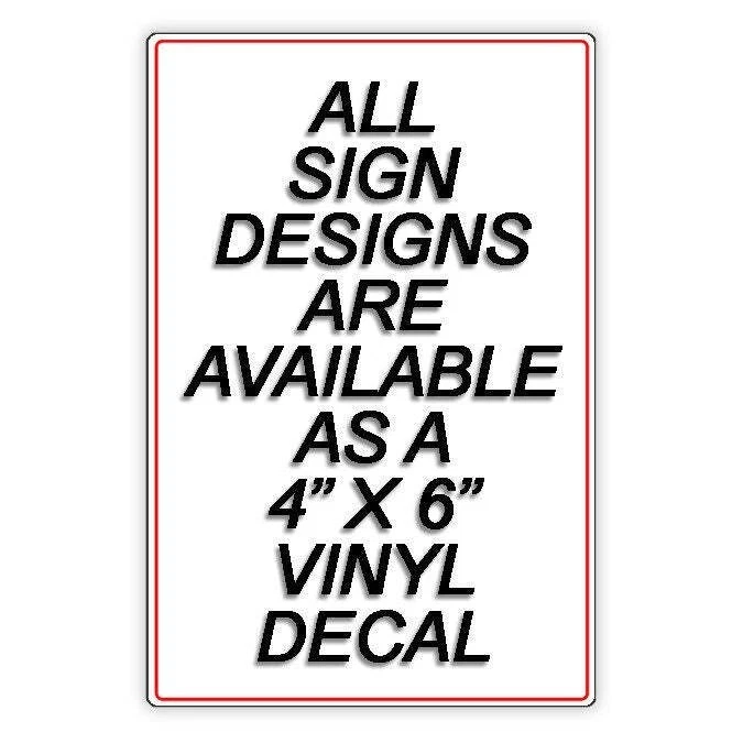 Available As An Aluminum Sign / Magnetic Sign / Vinyl Decal PLEASE BE SURE TO SELECT THE CORRECT VERSION FROM THE DROP DOWN BOX Aluminum Signs Are Available In Five Versions 5" x 7" / 8" x 12" / 12" x 18" Printed directly onto the metal sign Signs do not have stickers, decals, paint or vinyl lettering Won't crack, peel, chip or rust. 5" x 7" (.025 thickness) Signs have square corners, two strips of mounting tape and no holes 8" x 12" (.025 thickness) Signs have rounded corners and are available in TWO OPTIONS AVAILABLE WITH 1/4" MOUNTING HOLES ALSO AVAILABLE WITHOUT MOUNTING HOLES BUT MOUNTING TAPE IS ATTACHED TO THE BACK OF THE SIGN 8" x 12" (.032 thickness) Signs have rounded corners and two 1/4" mounting holes 12" x 18" (.032 thickness) Signs have rounded corners and two 1/4" mounting holes Decals are 4" X 6" Vinyl decals do not have holes Printed with eco-solvent ink guaranteed to last 5 to 7 years Decals are shipped USPS First Class Mail with tracking CUSTOM DESIGN DECALS ALWAYS AVAILABLE Magnetic Signs Offer The Option Of Being Removable You can display the sign on your garage door or front door when you are expecting a delivery and then remove it when no delivery is expected Perfect if you'd prefer not to have a sign mounted permanently Magnetic signs are 7" x 10" or 5" x 7" and have no holes PLEASE CHECK TO MAKE SURE THAT MAGNETS STICK TO THE AREA THAT YOU PLAN TO USE THE MAGNETIC SIGN Some doors are aluminum and the signs may not stick PREMIUM QUALITY Made In The U.S.A. FAST SHIPPING 100% COMPLETE SATISFACTION GUARANTEED Your item will arrive quickly and in perfect condition. If there is anything about the transaction that doesn't meet your expectations, or if your item is damaged in shipping by the post office, Please send us a message and give us the opportunity to address your concern We promise to correct all problems to your complete satisfaction as quickly and easily as possible. EVERYTHING THAT WE SELL IS 100% MANUFACTURED IN THE UNITED STATES SINCE 1998 Thank you for supporting a family owned business