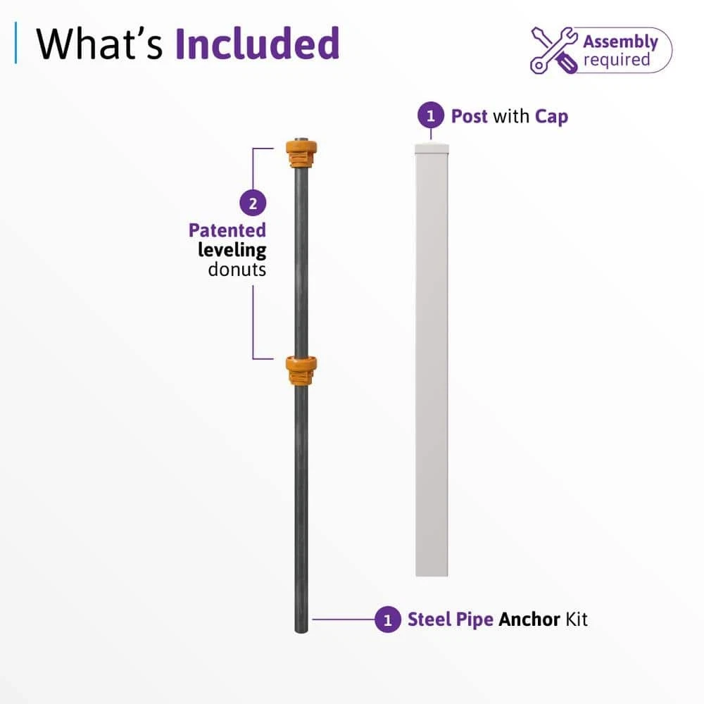 This fence post is a game-changer! Super easy to install—just hammer the steel anchor into the ground, no digging or concrete needed. The vinyl is sturdy, holds up against wind, and stays perfectly straight with the leveling donuts. Perfect for DIYers who want a long-lasting fence without the hassle. The lifetime warranty is a huge plus! Highly recommend.