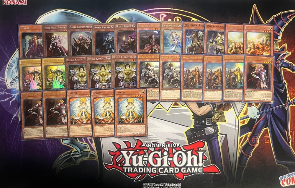 Hello! You are purchasing the deck list below, the cards will be English, real, and near mint to light play condition at worst. All decks are built with the lowest rarities for cards in mind to keep the price of the deck low and affordable for all duelists! Some cards may be in speed duel printing if this is the cheapest available copy of the card, but do not worry these are real cards and legal for tournament use! Purchase with confidence and safety! As an added bonus one pack of card sleeves will be included with your deck! Thanks again and good luck dueling! Now here's the decklist; Monsters: 1| Merlin 1| Noble Knight Custennin 1| Noble Knight Pellinore 1| Lady of the Lake 1| Ignoble Knight of Black Laundsallyn 1| Noble Knight Eachtar 1| Noble Knight Bedwyr 1| Noble Knight Peredur 1| Noble Knight Gwalchavad 2| Noble Knight Gawayn 2| Noble Knight Drystan 2| Noble Knight Artorigus 3| Noble Knight Borz 3| Noble Knight Brothers 3| Noble Knight Medraut 3| Honest Spells; 1| Reinforcement of the Army 1| Noble Knights of the Round Table 1| Swords At Dawn 1| Glory of the Noble Knights 2| Noble Arms - Clarent 2| Noble Arms - Caliburn 2| Noble Arms of Destiny 2| Noble Arms - Gallatin 2| Noble Arms - Arfeudutyr Traps: 1| Avalon 2| Rivalry of Warlords 3| Call of the Haunted Extra Deck; 1| Decode Talker 1| Gaia Saber, The Lightning Shadow 1| Number S39: Utopia The Lightning 1| Number 39: Utopia 1| Sacred Noble Knight of King Custennin 1| Gagaga Samurai 1| Daigusto Emeral 1| Castel, The Skyblaster Musketeer 1| Bujinki Amaterasu 1| Abyss Dweller