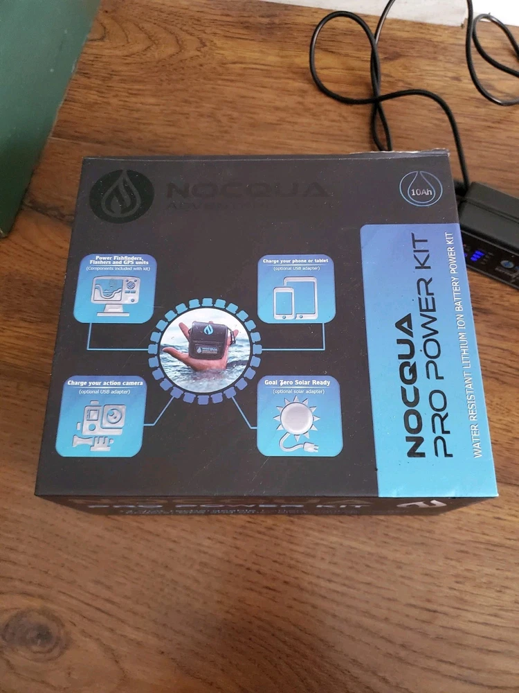 Noqcqua 12 voltage rechargeable battery source electronic device 10ah, rip on the corner of the box in the back, as pictured, no returns. Shipped USPS