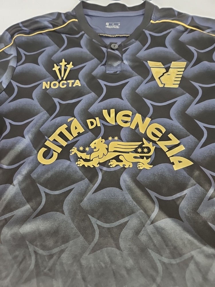 The Nocta Venezia FC 2024/25 Home Medium Replica Jersey is a high-quality soccer jersey made from polyester material in Thailand. Designed by the brand Nocta, this regular-fit jersey in size M features the team's home design for the 2024/25 season. Perfect for fans and players alike, this jersey is a stylish and comfortable choice for showing support during games and training sessions.