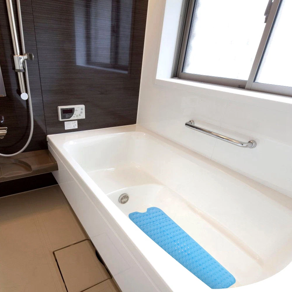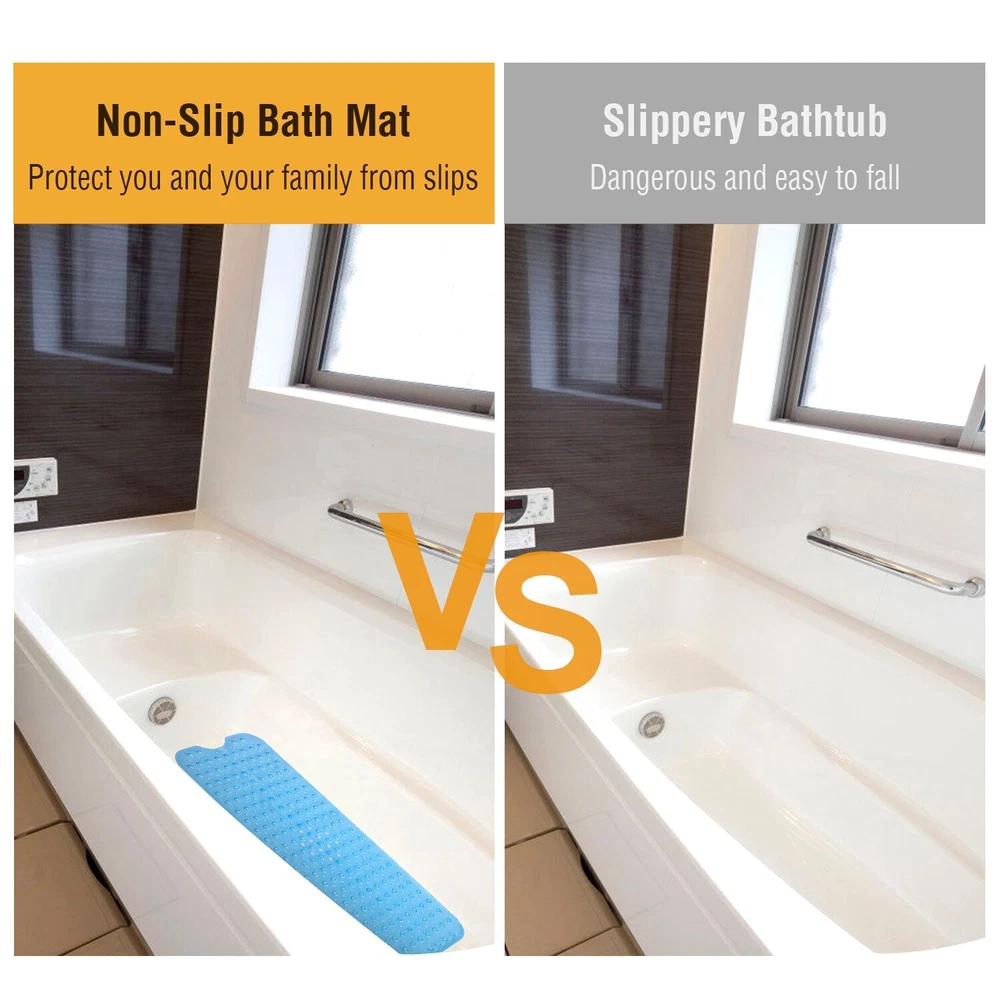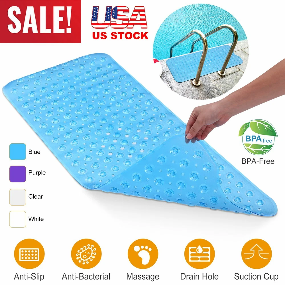 eBay GOOD QUALITY & FAST SHIPPING Product Detail Image Gallery Product Description Overview: Are you looking for a safe and comfortable bath mat? Our anti-slip mat is made of BPA-free, anti-bacterial PVC plastic, soft and durable. There are 200 suction cups on the bottom that can attach to the clean and wet floor firmly, and the drainage holes allow free water circulation. The pebbles design and the anti-slip texture give the best slip-resistant effect and a comfortable massage experience to promote blood circulation. Also, the bath mat is machine-washable to facilitate hassle-free maintenance without color fading or deforming. 4 beautiful colors give your more choices and bring more brightness to your home. Get one non-slip bath mat, bring more security to your family. Features: *SKIN-FRIENDLY & SOFT MATERIAL: Our non-slip bath mat is made of premium PVC material,which is BPA-free,anti-bacterial and odorless,and you can use it safely for your family. Also,our mat is soft and mild,so you can stand on it barefoot comfortably. *NON-SLIP & DRAIN HOLES: Each mat features 200 suction cups on the bottom,helping the mat fix on the smooth floor and tub firmly,giving you and your family members a safer shower. There are 196 small drain holes allowing water to circulate. Warm Prompt:Please use the mat on clean and wet floor for strong suction effect. *PEBBLES MASSAGE FUNCTION: The surface of our mat is designed to the shape of oval pebbles with anti-slip texture,preventing dangerous falling accidents. Besides,the mat gives a natural massage function to your feet to accelerate blood circulation and relief fatigue by simply standing and walking on it. *MACHINE WASHABLE: Due to the waterproof PVC material,our bath mat is machine-washable to facilitate hassle-free maintenance and uphold its fresh appearance without color fading or deforming. *4 AVAILABLE COLORS: We offer 4 colors for option,including transparent purple,transparent blue,transparent white,and white. You can choose your favored color for your tub,bathroom,kitchen,balcony and other slippery places. Warm Note: 1. Suggest washing your mat prior to use. Simply throw the mat in your washing machine on cold with gentle detergent(no bleach) to wash and air dry. 2. Suggest rinsing and drying your bath mat periodically to remove oily and slippery buildup that may occur from various soaps and hair products. 3. The bath mat will only attach to clean,smooth surface. Not for use on textured,tiled,or non-smooth surfaces. 4. The bathtub must be clean,without any dirt,smudges,oils. Do not use bath oils and jump on the bath mat– may cause slipping. Specifications: Brand: iMounTEK Brand Type: Non-Slip Bath Mat Material: PVC Plastic Available Colors: Transparent Blue, Transparent Purple, Transparent White, White Product Size: 39.37x15.75x0.39in / 100x40x1cm (LxWxH) Product Weight: 560g/1.23lbs Package Size: 52x13.5x4.5cm/20.47x5.3x1.77in Package Weight: 560g/1.23lbs Package Contents: 1 x Non-Slip Bath Mat Terms & Conditions Thank you for your business !