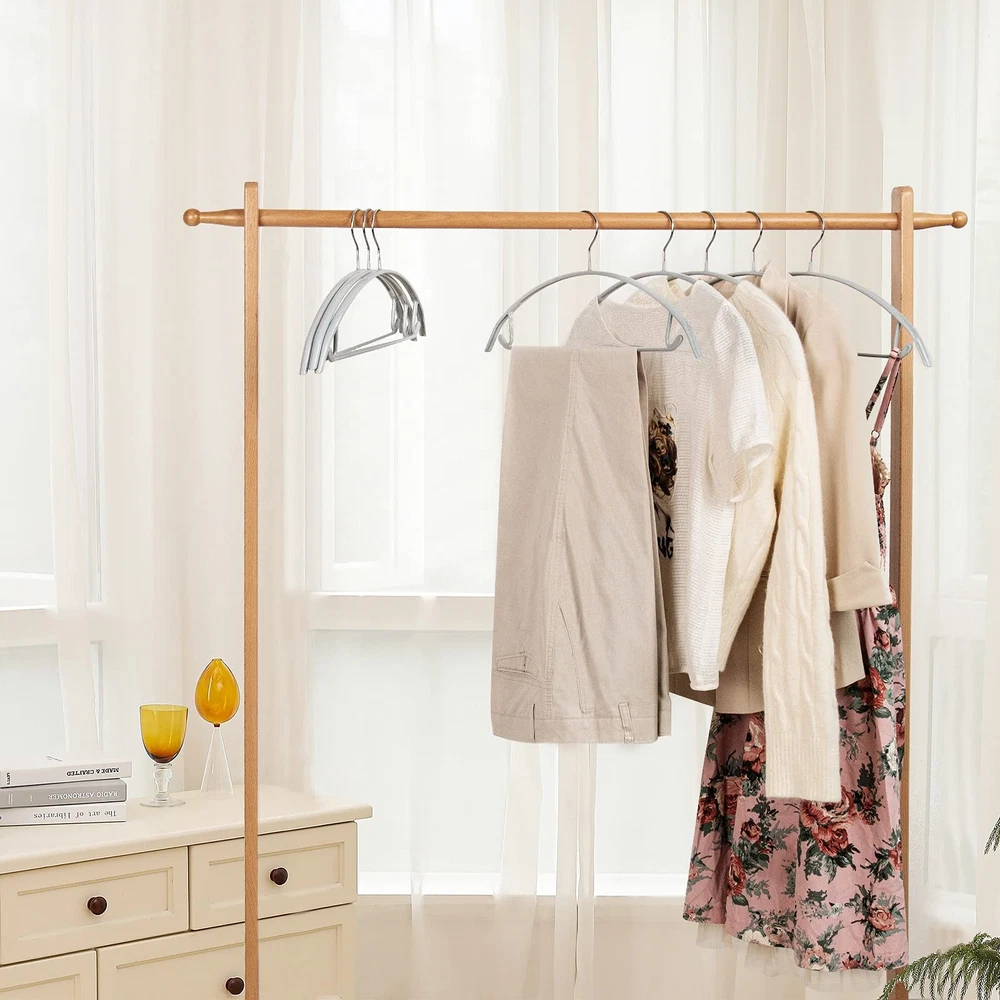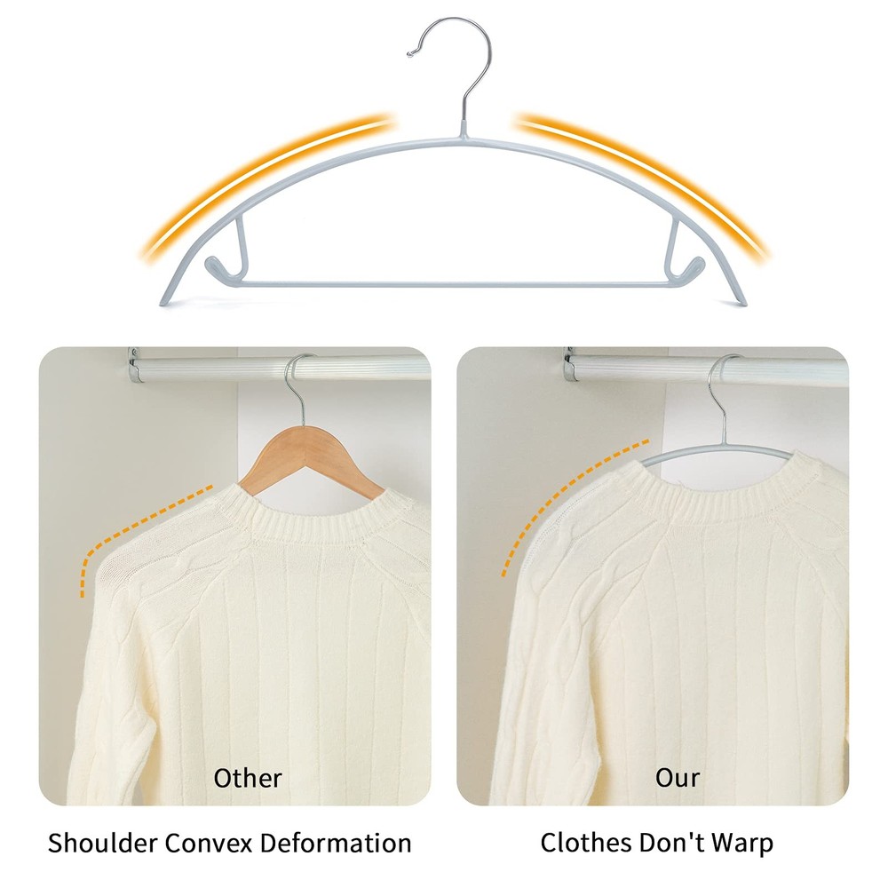 10 Pack Non-Slip Suit Hanger,Coat Jacket Hangers,Sweater Hangers,PVC-Coating Metal Hangers for Pants,Shawls,Belts,Bras - Dimple & Crease Free T-shirt Hangers,Silvery Grey color Product Features: ✿ Durable heavy metal construction holds firm and won't bend like cheaper woods and plastics hangers. ✿ Non-Slip-resistant vinyl coating protect your clothes from slipping off. ✿ Dimple & Crease Free,The rounded shoulders mimic the natural curvatures of your shoulders to keep your garments in original shape without any Dimple & Crease ✿ Non-slip bar design can hang heavier pants or slacks, don't worry it will bend, fall down or cause creases. ✿ Multi-function hangers, Perfect for Coat, Suit, Jacket, Sweaters,Scarves, Shawls, Belts, Bras and Ties etc. ✿ Individual Coat Hanger Dimensions - 16.54*7.75*0.47 inches. ✿ Packaged by hard box with 10pack. Set of 10 pcs deluxe and heavy duty pvc-coating hangers Durable heavy metal construction, Slip-resistant vinyl coating protect your clothes from slipping off. Fits most standard closet rods. Multi-function hangers, Perfect for Coat, Suit, Jacket, Sweaters,Scarves, Shawls, Belts, Bras and Ties etc. Dimension: 16.54*7.75*0.47 inches.