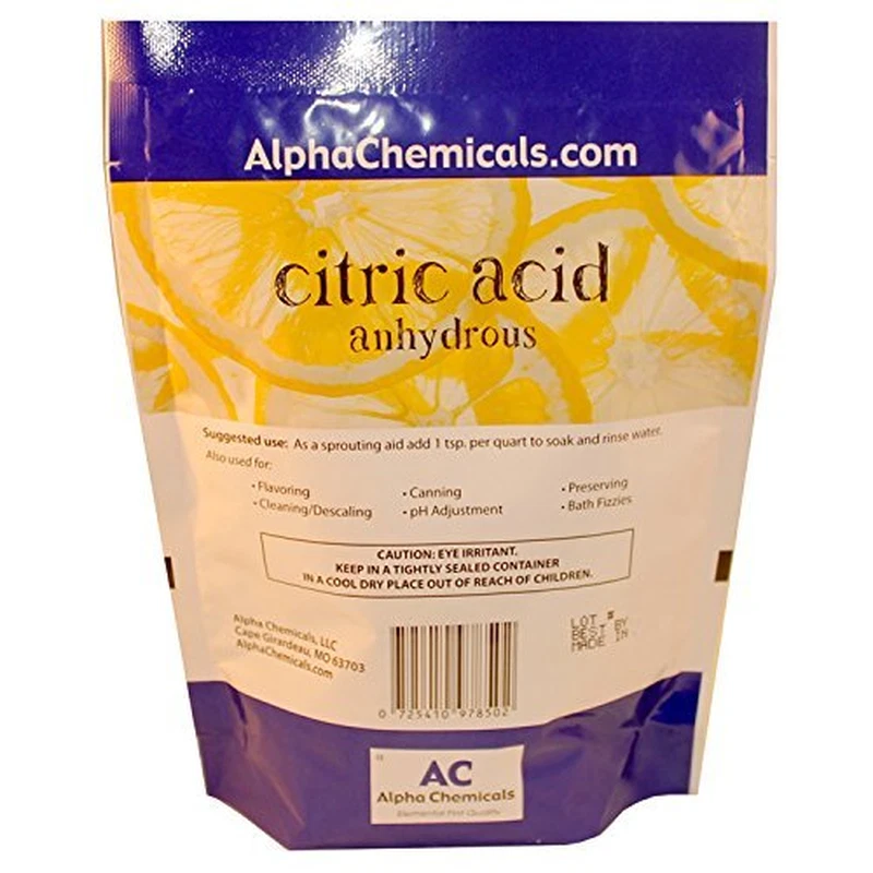 Approved for use in organic foods and GMO-free Premium Food Grade Citric Acid Non-GMO Project Verified Used to add sour flavor to candies and other foods Great for descaling dishwashers, coffee pots, water faucets, etc. Product Description Non-GMO Project Verified Safe to use and non-GMO! Verification through the Non-GMO Project Approved for Organic Foods Healthy Kitchen Flavoring for Food and Recipes Seasoning Canning Preserving pH Adjustment Sprouting Aid Beauty and Bath Bath Fizzies Our Citric Acid is perfect for relaxing Bath Bombs Just the right texture and grain size for rapid fizz! Cosmetic pH Adjuster Brilliantly Clean Cleaning Descaling Excellent for removing hard water deposits Safe for family and pets