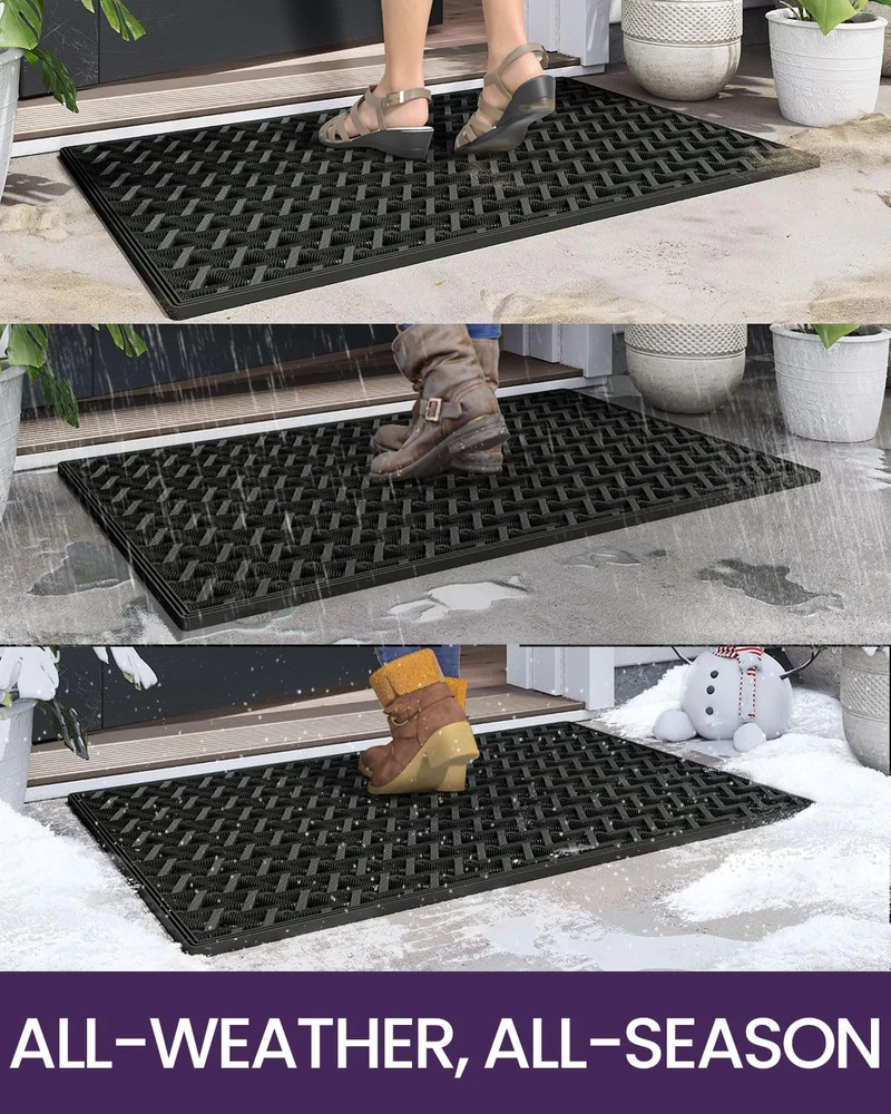 Store New Arrivals Add to Favorite View Feedback Contact Fast deliveries to the customer's home Quality customer service John Make the customers happy! Front Door Mat outside Entrance, 19X29 Rubber Doormat, Stain Resistant, Low Profile, All-Season Weather Dirt Trapping, Waterproof Easy Clean Mats, Black Description Outdoor Door Mat: The DEXI door mat created with new technology, long-lasting and renewable TPE, provides comfortable feeling underfoot. Designed to be tough and sturdy with triangular patterns and hexagon drainage holes for trapping dirt, moisture and slush from outsides entrance, this well-built outdoor mat can be used as a front door mat for entryway, keeps your indoor floors clean and dry. Trap Dirt & Moisture: The outdoor welcome mat is designed with drainage holes throughout the entrance mat that aim in dissipating moisture and allowing water to drain, designed with hollow triangular patterns for helping remove dirt and snow from your shoes. The doormat for outdoor entrance is built to withstand all weather which including rainy or snowing, ideal for wet weather climates. Non Slip & Low Profile: This all-weather doormat can avoid sliding, well-made TPE construction ensures front door mat stays in place when wiping shoes and provides stability. The rugs for entryway feature low profile design so that the majority of doors will easily clear its height. Easy to Clean: The outdoor door mat is easy to maintain, simply give it a quick shake out. If it still needs deeper clean, hose it down with water and hang it to dry. Instead of water collecting in a single location, our door mats outside entrance are able to be drained and dispersed through the drainage holes so that it dries faster. Versatile Use: Our waterproof indoor outdoor rug is ideal for house garden, or any other moisture and high traffic area, keep one at each entryway, front door, porch, patio, garage to keep dirt and debris outside while adding an elegant touch to your decor. Product Description Style Modern Material TPE Weave Type Machine Made Pattern Triangle Country of Origin China Is Stain Resistant Yes Theme Welcome Number of Pieces 1 Is Autographed No Min Required Door Width 19.5 Inches Age Range (Description) Adult Seasons Winter, Summer, Fall, Spring Rug Form Type Doormat Item Thickness 0.35 Inches Indoor/Outdoor Usage Outdoor Animal theme Dog Water Resistance Level Waterproof Room Type Entryway, Bathroom, Kitchen, Patio, Hallway Item Weight 3.3 Pounds Pile Height Low Pile Construction Type Machine Made Occasion Outdoor Patio Special Feature Waterproof, Fade Resistant, Stain Resistant, Non Slip, Dirt Trapper Color Black Shape Rectangular Back Material Type Thermoplastic Elastomer Product Dimensions 29.5"L x 19"W Product Care Instructions Hand Wash Only Size 19"x29" ABOUT US We offer the best prices around on high quality products. Our E-store includes media such as books, movies, music and games while offering electronics, toys, sporting apparel, clothing, tools, general home, garden items and more. SHIPPING We are always working hard to ensure your package arrives as soon as possible. Please understand that some factors like weather, high postal traffic, and the performance of shipping companies are outside of our control. We offer free shipping to the lower 48 states and ship within 2 business days of payment, usually sooner. We do not accept P.O. Boxes. Please provide a physical address. For shipping outside of the continental USA, we only use eBay's Global Shipping Program. The item is shipped to KY and then sent to the rest of the world. International customers are responsible for all duties and taxes. Continue to 'check out' to calculate costs for shipping the item to your country. Messages regarding eBay's Global Shipping Program MUST be directed at eBay EXCLUSIVELY. RETURNS We offer a 30-Day Return Policy on items in which you are not completely satisfied with. You have the option of a full-refund or an exchange of the item. No returns are available on items shipped outside of the USA PAYMENT We accept PayPal. CONTACT US This page content is yet to come Please ad us to your favorite seller and visit again later Thank You CUSTOMER SATISFACTION We try our very best to make sure every customer is completely satisfied. If there's a problem, message us! We're happy to help. WE ACCEPT