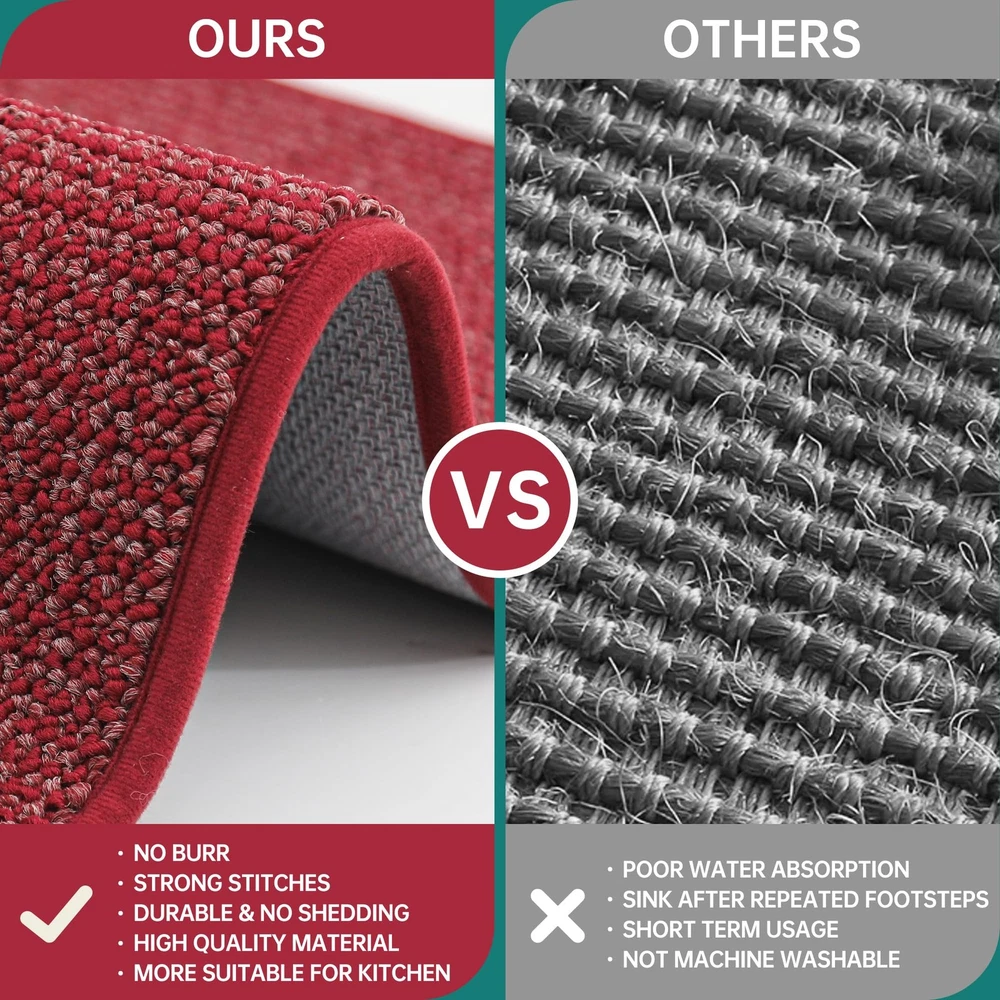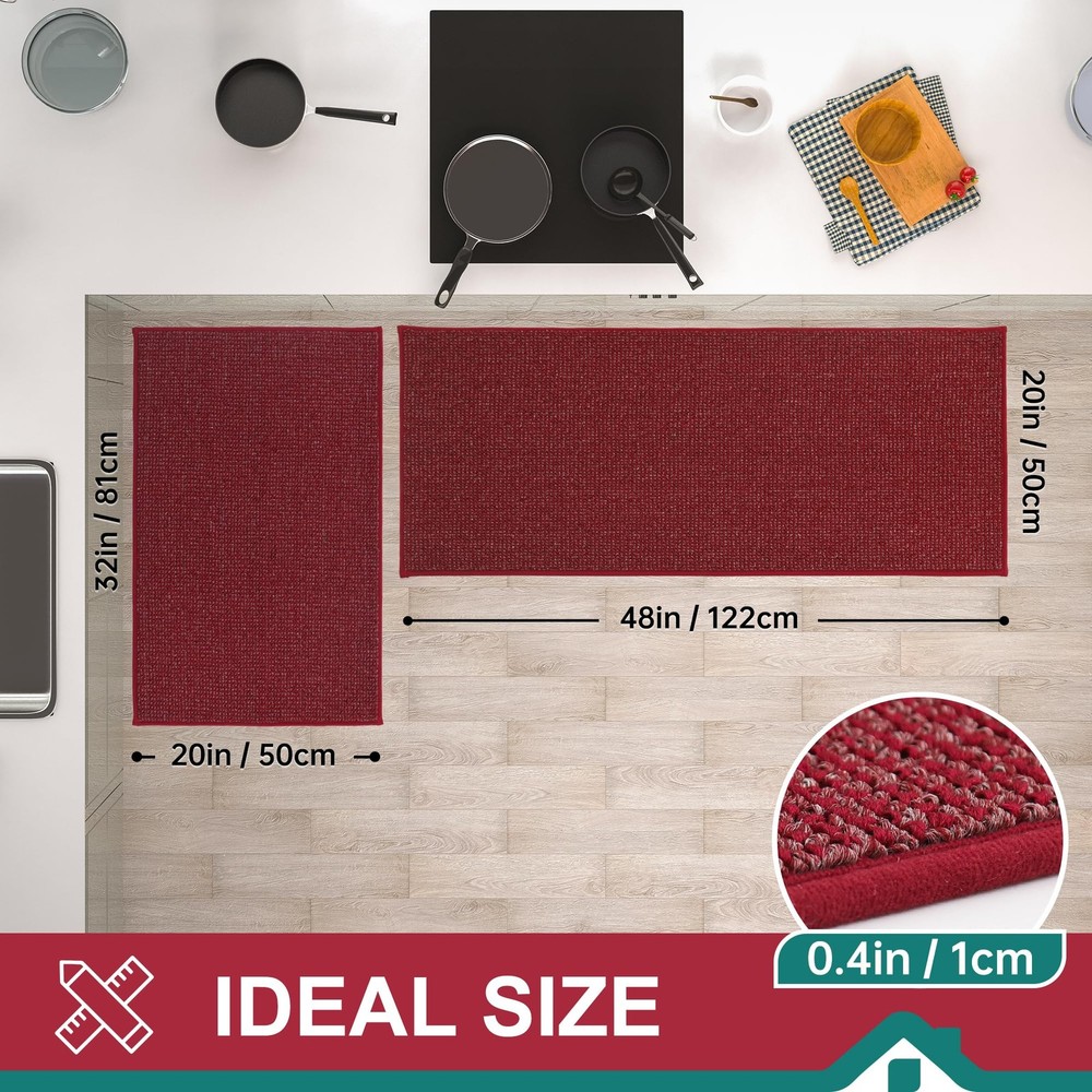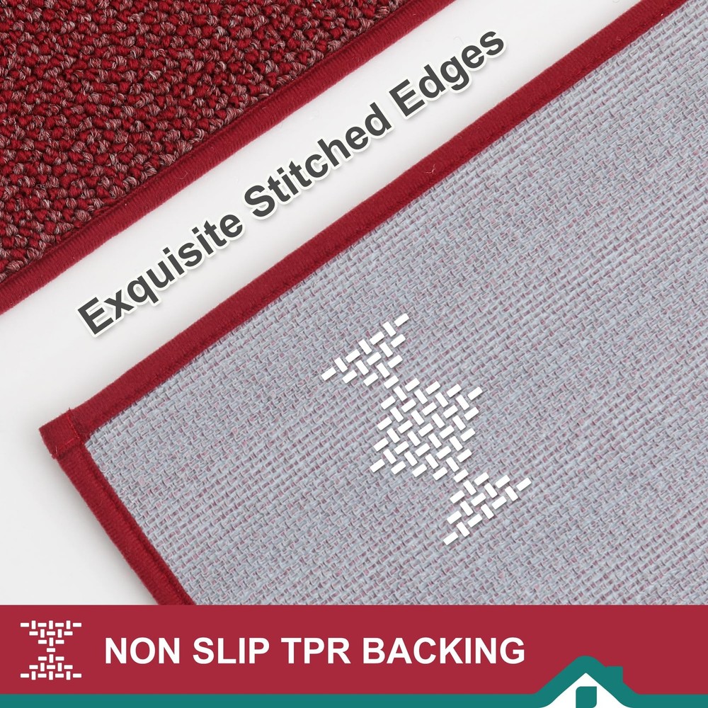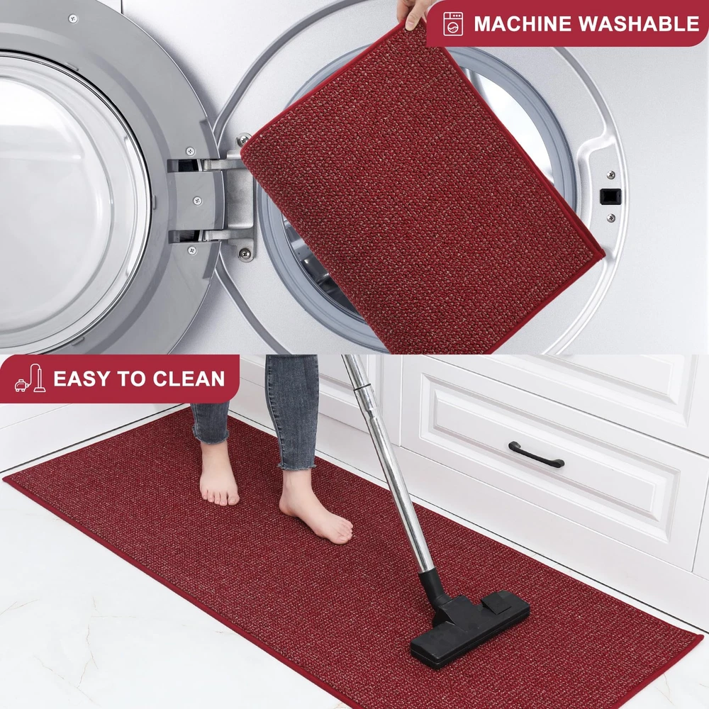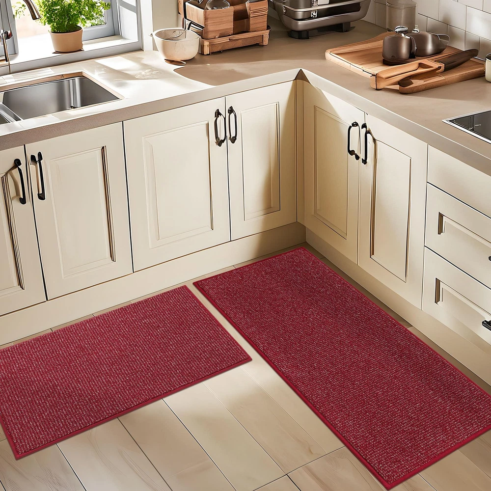 kitchen rugs are made of premium Polypropylene materials, with super stain-resistant properties that can protect the floor from oil, dampness, sauces or food particles. The Non-Slip TPR backing keeps the kitchen mat in place and non-slip during use. Our microfiber kitchen rugs are durable, suitable for any kitchen style and will decorate your kitchen nicely. EXTRA ABSORBENT & PROTECTION: Our kitchen rugs and mats are made of premium fibers and extremely dense yarns, which can effectively absorb spilled oil and water, keeping your kitchen clean and tidy. The kitchen rugs can also protect the floor from your beloved tableware breaking or damaging the floor. The soft surface of the kitchen mat will be the best protective layer DURABLE AND STAIN-RESISTANT: Our kitchen rugs are made of high-quality Polypropylene microfiber, the tight sewing and extremely dense yarns ensuring exceptional durability, superb absorbency, stain resistance and colorfastness. Protect your floor from oil, moisture, sauces or food particles NON-SLIP TPR BACKING: The rugs for kitchen are designed with TPR anti-skid backing that ensures the kitchen mats stay firmly on your floor, minimizing the risk of slips, trips, and falls. NOTE: Please make sure the floor is clean and dry before placing EASY TO CLEAN: The stain and fade resistant kitchen runner rug can be easily cleaned by the vacuum cleaner. For a deeper clean, machine wash separately in cold water, using mild detergent. Tumble dry, low heat. Do not use bleach or fabric softener. Our kitchen floor mats will not fade or wear out and will remain like new even after repeated washing : Our kitchen mats can easily match any kitchen decor, suitable for kitchen, hallway, bedroom, living room, door entrances, stairs, balcony, laundry room and more. We are always pursuing customer satisfaction as the top of priority. We are glad to receive more suggestions from our customers if you have any problem, please feel free to