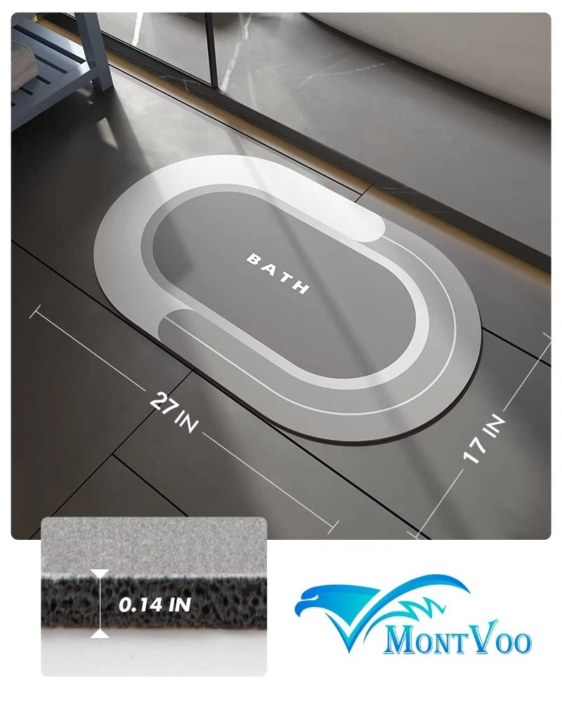 MontVoo Bath Mat-Bathroom Mat Bathroom Rug Absorbent Non Slip Quick Dry Stain Resistant Bath Mat Rug for Bathroom Floor Bathmat-Easy Care Shower Rug for Outside Bathtub Shower Room 17"x27" Grey Super Absorbent & Stain Resistant: Innovative advanced nano porous PU leather surface can absorb dripping water instantly without leaving any watermarks or stains. Super absorbent bath mat in front of bathtub, shower door or sink to keep bathroom floor clean, dry and safe. Easy Clean&Durable: Durable and easy clean than bath stone mat. No stains comparing to normal soft diatomaceous earth bath mat. No pilling, fading, shedding comparing to traditional microfiber bath rug Smooth surface designed to resist dirt and hair, friendly for family with pets. Simple wiping or rinsing can make your bath matt as well as new. Quick Dry Bath Mat: Numerous tiny pores within the bathroom mat allows water evaporates quickly in the natural air. Usually, watermarks can magically vanish within few minutes. Fast drying bath mat won’t be too damp for the next user. Anti-Skid & Anti-Leakage: Rubber backed non slip bath mat performs well in skid-resistance on smooth wet floor, comparing to other TPR or PVC backing. Durable rubber backing also stop water seeping underneath then flowing everywhere. Furthermore, the rubber bath mat won’t be smelly after being wet for long time. User-friendly Thin Bath Mat: Proper thickness is friendly for all users. Thin bathroom mat can minimize the risk of tripping hazards and is easy for doors or wheels to pass on. Different sizes available. Small bath mat 17”x27”,20”x32”. Large bath mat 17”x35”, 24”x35”. Long bathroom rugs runner 17”x59”, 24”x48”. SHIPPING Domestic Buyers - We have confidence in our products, but if you are not fully satisfied please contact us within 30 days of purchase and you will get full refund. - We ship within 3 business days of payment, usually sooner - We offer FREE shipping on all orders! - We only ship to the lower 48 states, no APO/FPO addresses or PO Boxes allowed International buyers – please note: Import duties, taxes, and charges aren't included in the item price or postage cost. These charges are the buyer's responsibility. - Please check with your country's customs office to determine what these additional costs will be prior to bidding or buying. * Order Cancellation Policy ** You can return a product for up to 30 days from the date you purchased it. 1. The seller reserves the right to cancel the special case only due to eBay cancellation fee. 2. The decision of seller is the final. 3. The seller will respond to the cancellation request within 2 business days. Please wait for the result of cancellation. 4. In case the cancellation is not completed by some reasons, the buyer can follow the options below to get the refund. 4.1 The buyer can reject the item when it arrives. 4.2 The buyer can send the item back to the seller within 30 days If the buyer receives item (USA Shipment ONLY). The seller will provide the FREE return label to the buyer when the buyer opens " Return Item" case on eBay by using the reason as "Change my mind" ONLY. 5. When buyer has placed the order. The order will be processed and completed by automatic warehouse system within 5 minutes. In case that buyer sends the cancellation request after 5 minutes of placing the order, the request will be rejected. **Sending direct message to cancel the order is not allowed for every case.* Return Policy For the return case - If buyer would like to return the items for refund or replacement, please CONTACT SELLER to receive the free return label from seller. The refund or replacement will be processed with the tracking number of return label which is provided by seller only. The other ways of return which are not approved by seller will not be processed for the refund or replacement.