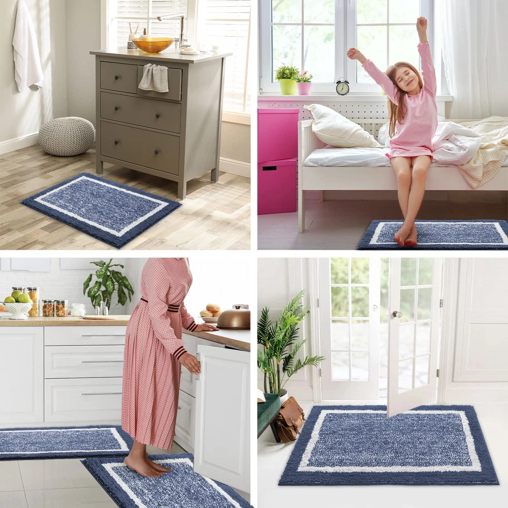 【Ultra-Plush Shaggy Feel】The bathroom rugs are made of 100% premium microfiber which are ultra soft and cozy, the rug is about 0.8 inches thick so your feet can feel silky soft. The plush bath mat is perfect beside your bath, bed, or entranceway, making it easy to keep your whole home comfortable and tidy. 【Super Absorbent】With the extra soft absorbent premium microfiber material, the luxurious shag pile bath rugs can offer a cushy spot to dry off and keeping your room floors dry and clean. 【Safe Non-Slip Design】The upgraded TPE Rubber backing is durable for long lasting use compared with other TPR materials, which ensures that the mat stays perfectly in place, helping to prevent you from falling on slippery bathroom floors. The TPE backing can be recycled to save energy effectively which is strong, sticky, and durable, without the harsh chemicals of PVC. Sticks easily to tile, wood, and concrete to protect you and your floors. 【Widely Used】The bathroom rugs come with different colors and sizes creating a look of elegance to complement your decor. Also, it can be widely used as a bath mat, bathtub mat, bathroom rugs, door mats, bedroom rugs, dog bath mats, and foot bath mats. Wide Versatility. This is a multifunctional rug. Put them in living room to sit, in the entry way to keep the dust away from your house. 【Machine washable】This bathroom floor mats are machine washable with cold water and mild detergent (no chlorine or bleach) hang air dry. The Color will not fade and stay vibrant for years after washing it.