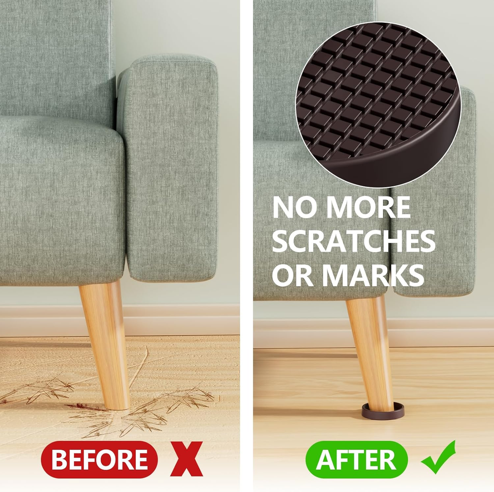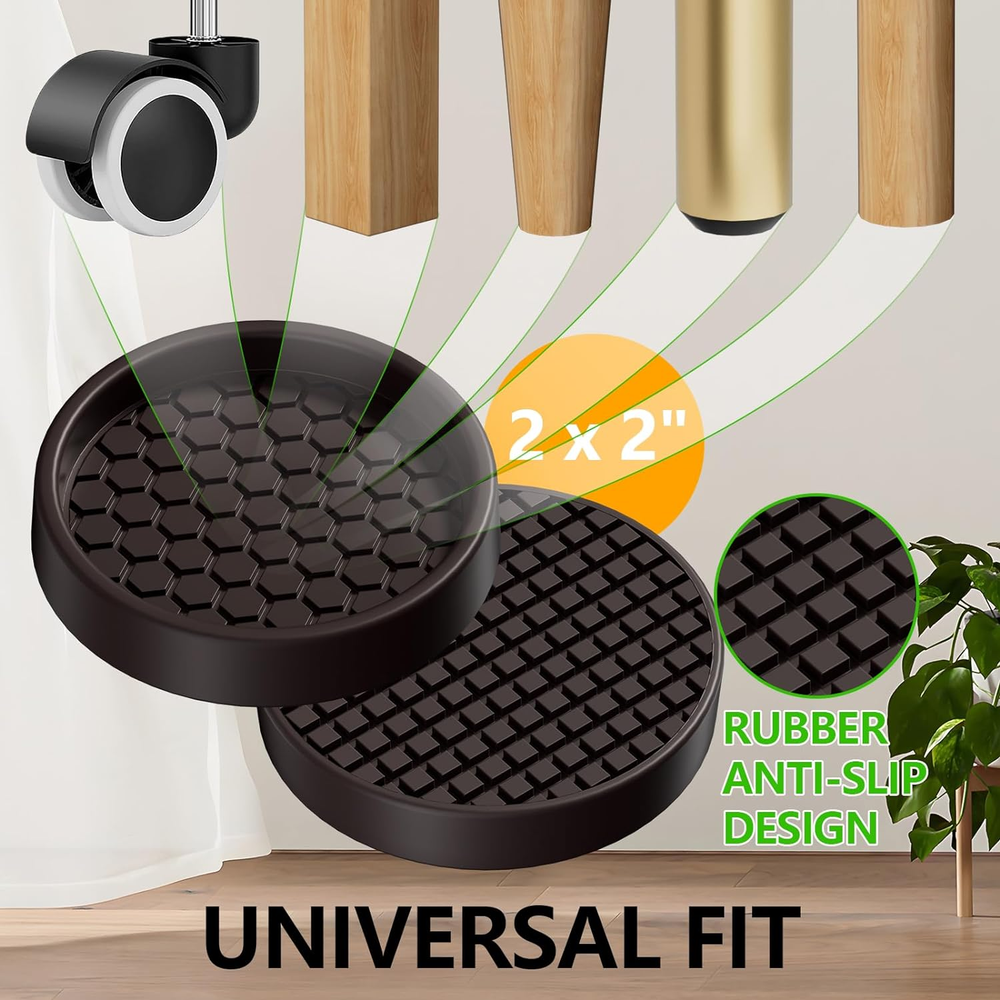 ☘︎STOPS YOUR FURNITURE FROM MOVING: GAGUIUP Caster Cups are made with anti-slip flexible silicone materials that are designed with anti-skid grippers to grip your floor and keep your furniture in place! Protect your floors from scratches by sliding furniture feet and eliminating annoying noise. ☘︎PROTECT ALL FLOORING: Best protection for ALL types of flooring - including hardwood, laminate, linoleum, vinyl, carpet, ceramic tile, cement, PERGO, deck floors, etc. No more scratches or marks on your floors. Enjoy your home beautiful life! ☘︎PREMIUM SOFT & DURABLE MATERIES: Made of odorless, sturdy, and soft food-grade silicone, can last a long useful life. There is enough thickness and an excellent adsorption design at the bottom. These anti-slip bed frame grippers can handle the weight of large furniture. Suitable for couches, sofas, beds, wardrobes, pianos, and other heavy furniture! ☘︎VARIETY FOR YOUR SATISFACTION - The anti slip furniture pads are available in a variety of sizes and colors: 2"x2" 2.5"x2.5", black and brown to fit most popular furniture choices. ☘︎EASY TO USE: The non-slip furniture pads are easy to install. Simply place the caster cup under the furniture foot, make sure it fits snugly, and press down slightly. Product Description NON SLIP FURNITURE PADS Add to Cart Add to Cart Add to Cart Add to Cart Customer Reviews 4.5 out of 5 stars 318 4.5 out of 5 stars 318 4.5 out of 5 stars 318 4.5 out of 5 stars 318 4.5 out of 5 stars 318 4.5 out of 5 stars 318 Price $13.99 $ 13 . 99 $13.99 $ 13 . 99 $13.43 $ 13 . 43 $14.99 $ 14 . 99 $15.99 $ 15 . 99 $14.39 $ 14 . 39 Material Silicone Silicone Silicone Silicone Silicone Silicone Size 2" Black 2.5" Black 3" Black 2“ x 2”-Black 2.5“ x 2.5”-Black 3“ x 3”-Black Shape Round Round Round Square Square Square Number Of Pieces 12 8 8 12 8 8 Grip Material Silicone Silicone Silicone Silicone Silicone Silicone