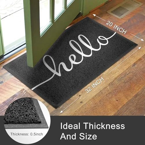Return Policy Fast Delivery Trusted seller Outdoor Mat Front Door Mat Welcome Mat Low Pile Door Mat Outdoor Entrance Non-Slip Outdoor Door Mat Kitchen Mat High Traffic Area Easy Clean Entrance Mat Hello Door Mat Indoor,20"x31.5" Product Description Not Water Absorbent: Crafted from PVC, this doormat efficiently removes dirt but doesn’t absorb water. For outdoor use, please drain any water that collects during rainy weather to keep it clean and functional Fade Resistant and Easy to Clean: Designed to maintain its vibrant look, this outdoor mats for front door is simple to clean—just shake off debris, sweep, or vacuum. For a deeper clean, hose it down and air dry. It quickly looks as good as new Dirt and Sand Absorbent: Our embossed "hello" mat traps dirt, sand, snow, and mud with its raised polyethylene fabric. Simply rub your shoes on the door mat at the indoor entrance to keep your living space clean and inviting Heat Warning: Please avoid exposing the door mat to direct sunlight for extended periods. High temperatures can cause the mat's backing to soften or melt, which may affect its durability and performance Crease Removal Tip: If your PVC doormat has creases, simply lay it flat for a few days. The creases will naturally disappear as the material relaxes and returns to its original shape Sturdy and Low Profile: With its sturdy yet low profile design, our entryway rug glides effortlessly under most doors without curling or catching. The non-slip rubber backing provides a secure grip on any floor type, ensuring safety in high traffic areas Versatile Application: Our outdoor hello mat suits any entryway, home, office, stairs, patio, porch, garage, laundry room, balcony, kitchen, or bathroom. It's a versatile addition to any high-traffic area, keeping your space clean and welcoming Shipping Returns Payment Shipping Shipping is FREE to all addresses other than APO/PO boxes in the lower 48 states. All our stock ships from US-based warehouses. Shipped via USPS or UPS (depending on location and package weight) Unless stated otherwise, all orders will ship within 24-72 hours of your payment being processed. Check our feedback to see the great reviews of FAST shipping we offer. Returns Seller does not accept returns Payment We currently accept payment via eBay managed payments only. Once payment is cleared, we will dispatch your shipment within 1-3 business days. Please refer to the "Shipping" tab for more information regarding shipping speed to your destination.
