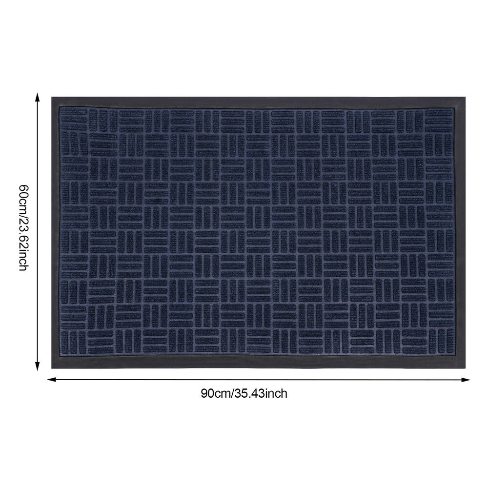 Welcome Mats Front Door Mat for outside Entry Rugs Entryway Outdoor 90*60cm Description The warmth of home, from the first step into the door to start ——for you to recommend our entry floor mats, a set of beauty, practicality, and quality in one of the good home products. It is made of high-quality materials, after exquisite craftsmanship, easy to adapt to a variety of home styles, and instantly enhances the overall home style, highlighting the unique taste. It has a unique non-slip design, for your safe plus an invisible line of protection, so that you and your family are in and out more at ease. Shop now and make every step home full of warmth and happiness! Key Features Sturdy and Durable: The product is made of high-quality polyester and synthetic rubber , using a hot melt implantable process to firmly bond the top layer (polyester surface) to the base layer ( synthetic rubber bottom), with high strength, f ade-resistant, eco-friendly, and non-toxic. Keep Indoor Clean: The product's surface features a grooved design that creates a retention dam to help catch dirt, dust, and other stray debris from getting inside. The high-quality polyester fabric on its surface absorbs moisture. The high edges around the doormat can effectively catch excess water, preventing the floor from getting wet on rainy days. Humanized Design: The non-slip rubber bottom gives the product a good grip on the ground, thus you can provide higher safety for your family to use. Also, the three-dimensional textured design increases its surface friction to prevent you from slipping. Ready to Use: This product is molded in one piece, so you can use it as soon as you receive it, eliminating the need for complex installation. Adjustable Size: This product is cuttable and foldable, so you can cut it to any size and shape you need for different-sized entries. Easy to Clean: Its simple construction allows you to easily clean it with water and a dust catcher for your convenience. Convenient Storage: Thanks to its good toughness, it can be rolled up and stored without taking up too much space. Stylish Design: The blue 、Grey color and minimalist design make this product modern and stylish, which blends well with other furniture decorations. Nice Gift: Thanks to its minimalist design and practical function, you can choose this product as a housewarming gift for your friends. Details Soft Edges: It has soft material on all sides for easy curling. Suitable Thickness: The 5mm thickness can prevent water from seeping into the floor and gives the product good shock absorption and tear resistance , making it soft and comfortable to step on. Moreover, It won't hinder the door from opening and closing, ideal for daily use in high-traffic areas. Application This product is suitable for indoor and outdoor use, such as entrance hall, bathroom, toilet, living room, hotel lobby, office, office building, gate, pavement, patio, garage, barn, driveway, and so on. Specifications Material: Polyester, Synthetic Rubber Process: Hot-melt Planting Style: Morden Color: Blue 、Grey Mount Type: Floor Mount Shape: Rectangular Assembly Required: No Thickness: 0.5cm/ 0.2 in Gross Weight:1.7kg/3.75 lbs Net Weight: 1.62kg/3.57 lbs Product Size: 90*60cm/35.43*23.62 in Package Size: 62*11.5*11.5cm/24.41*4.53*4.53 in Package Included 1* Entry Floor Mat Notes Please note that the product is shipped rolled up, but it still lays completely flat immediately when you use it. Please note that mat sizes are approximate as rubber shrinks and expands in conjunction with temperature and time. Please keep it away from fire, flammable materials, hazardous materials, scrapers, and other sharp objects. If any odor is found after receiving the product, please ventilate the product in a cool place for 2-3 days. If you are particularly sensitive to odors, you can extend the ventilation time. Please allow the slight color difference caused by the shooting light and 1-3cm error due to manual measurement, and make sure you do not mind before you order. Payment Delivery details Terms of sales About us Contact us Payment We accept ebay payment 。 Fees such as import duties, taxes are not included in the item price or shipping costs. These charges are the buyer's responsibility. Delivery details Shipping: 2-9 working days to: USA Terms of sales We maintain high standards of excellence and strive for hundred percent customer satisfaction. Feedback is very important to us. We hope that you contact us immediately before you give neutral or negative feedback, so that we can address your concerns. It is impossible to address issues if we do not know about them! About us Your satis faction is our ultimate goal. We work hard to earn your trust and future business. Our certified technicians have tested each item before shipping. The unit comes with 1 year limited warranty on all manufacturing defects. a) If you receive a defective item, you may return it or ask for a discount. Please contact us within 14 days after you receive the package. b) What you returned must be intact and in its original packaging as re? u. Customer is responsible for shipping costs of the returned item. c) We will cover the cost of shipping back t with the shipping rate indicated in the registration page. We will send you a new unit or refund the full payment you paid. Thank you. Contact us Business Hour Business Hour: Monday To Friday: 8:30 AM to 5:00 PM (Beijing China time) Due to time zones, our reply to your questions may not be immediately. But within above working time, we will reply your email within 24 hours. If it's non-workdays, please kindly be patient and wait till Monday. Please contact us with ebay message. Please feel free to contact us if you have any questions. Monday To Friday: 8:30 AM to 5:00 PM (Beijing China time) Due to time zones, our reply to your questions may not be immediately. But within above working time, we will reply your email within 24 hours. If it's non-workdays, please kin