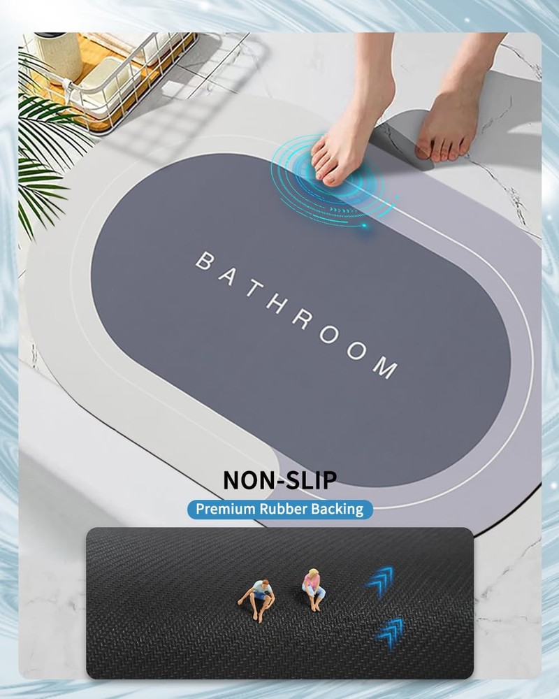 【Super Absorbent & Quick Dry】This is a soft diatomaceous earth bath mat for bathroom with advanced nano technology. When you come out of the bath or shower room, our quick dry mats can absorb dripping water from the wet feet within 1 second. After you stepping out, watermarks will disappear within few minutes, as if it had never been wet. 【Non-Slip Backing & No Risk of Tripping】The super absorbent bath mat is anti-slip, rubber bottom of the bath rugs helps to increase the friction with the ground, it can grip on wet and smooth floor tightly. This rubber backed bathroom mat minimizes the risk of slipping in children and the elderly. 【High Quality & No shedding】Our bath floor mat is very soft and smooth. Unlike traditional chenille rugs for bathroom, our shower mats is more durable and will not have problems of shedding and fading. 【Dirt Resistant & Easy to Clean】The smooth surface design helps to resist dirt and hair. Therefore, you don’t need to dry or clean the washable bath mat every day. If you want to clean it after long-time use, simply wipe the washable bathroom rugs with a wet cloth, or rinse it with shower nozzle, which can make the bath rug looks as good as new . 【Multiple-Purpose】It's more than a mat for bathroom. You can use it wherever it is easy to get wet or wherever you want to add warmth to your feet. As thin bathroom rugs fit under door, it can be laundry room mat, kitchen mat, in front of sink mat, pet feeding mat or desk mat etc. And fashionable and simple colors and patterns can be matched with any room.